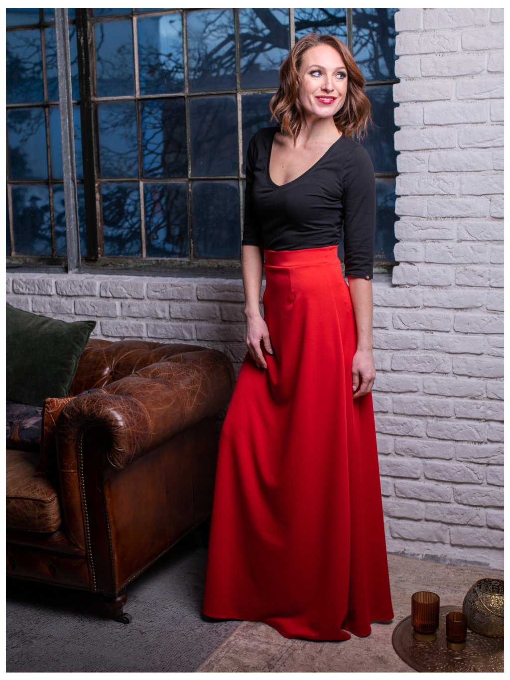 Červená dámská sukně je celoročně vhodná sukně pro všechny, co mají rádi sukně ke kotníkům. Sukně je elegantní a slušivá.