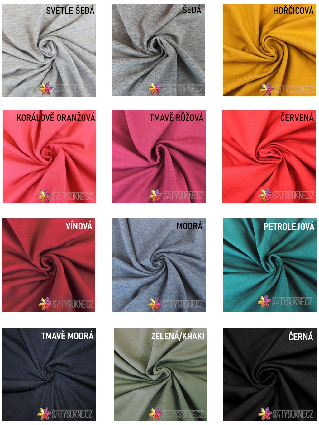 Materiál je silnější úplet - mikinovina. Bavlna / elastan - přírodní charakter vláken - prodyšnost, příjemný na nošení.