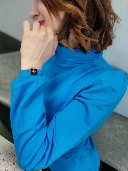 Mikina střihu SIMONE- má nízký stojáček, a nabírané rukávy v rukávové hlavici.