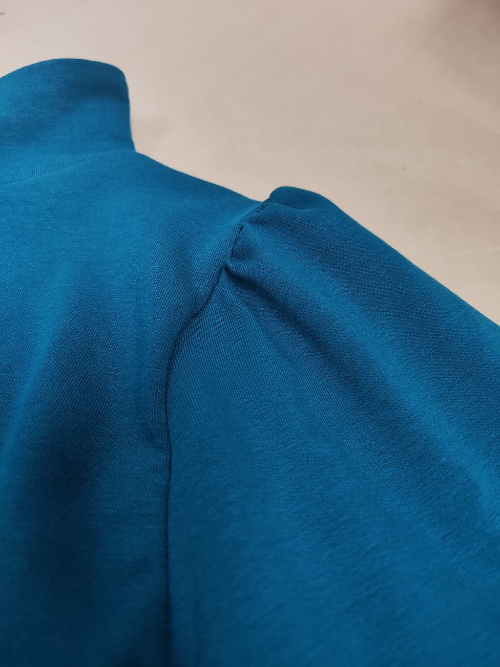 Mikina střihu SIMONE- má nízký stojáček, a nabírané rukávy v rukávové hlavici.