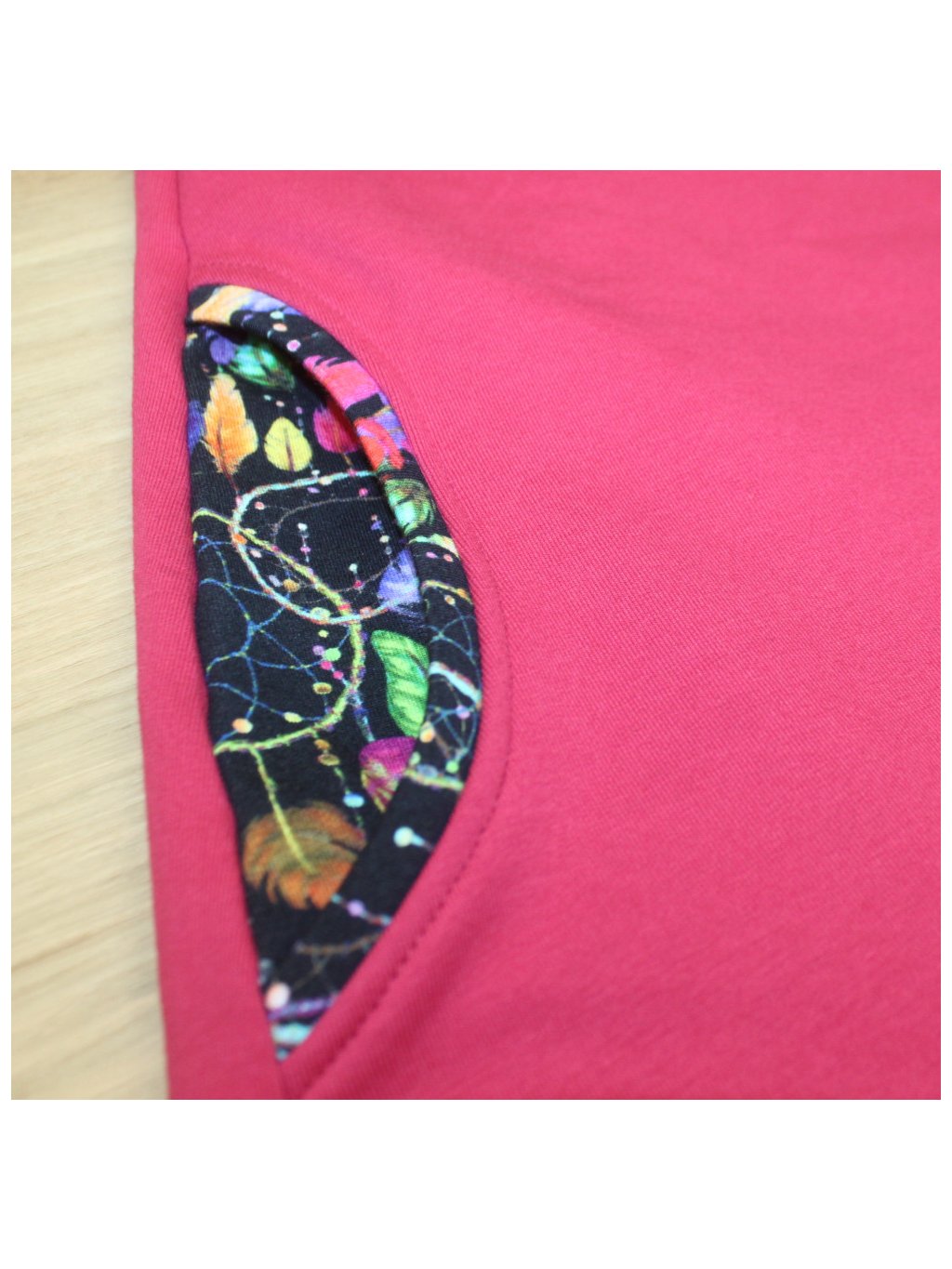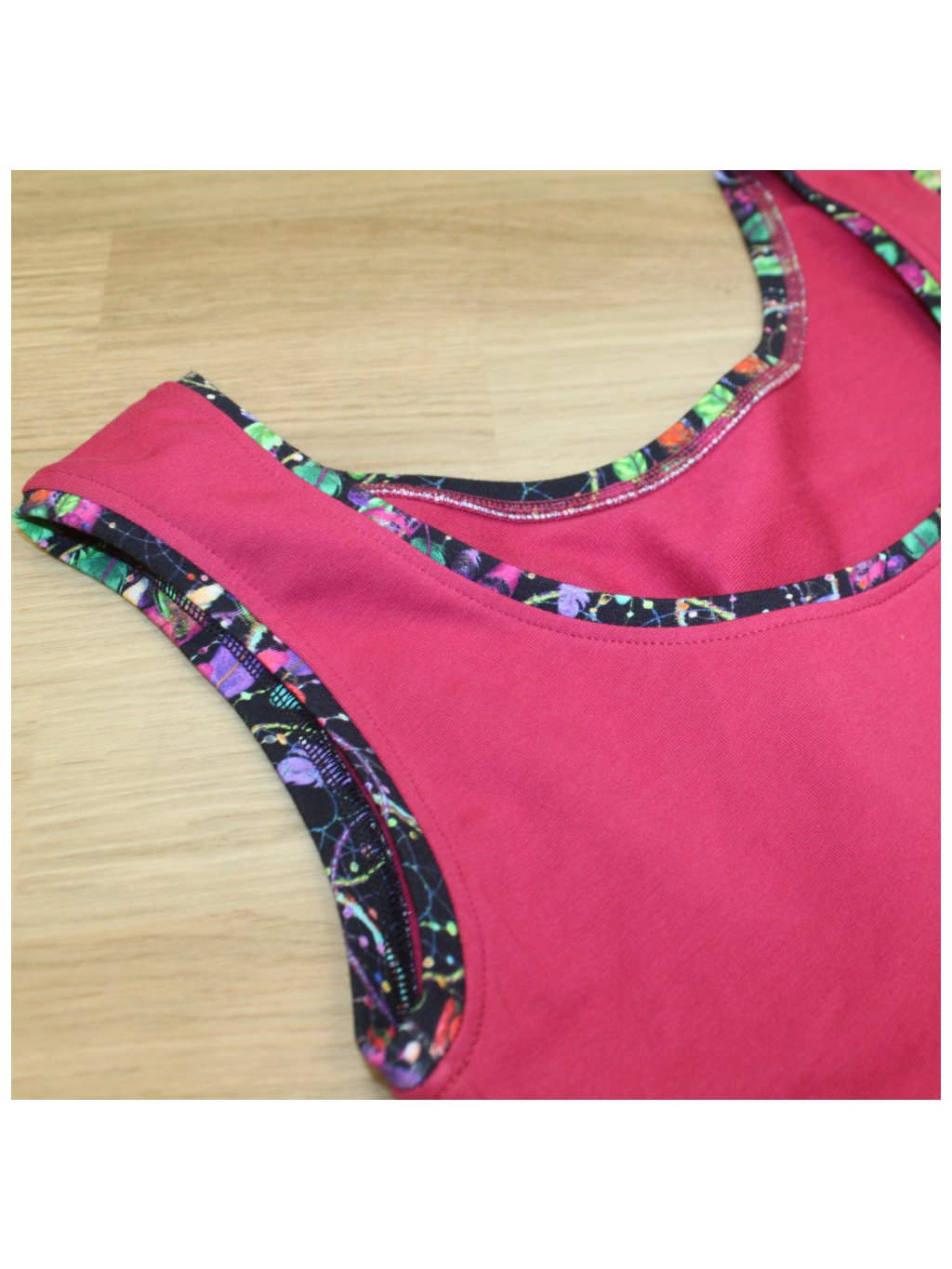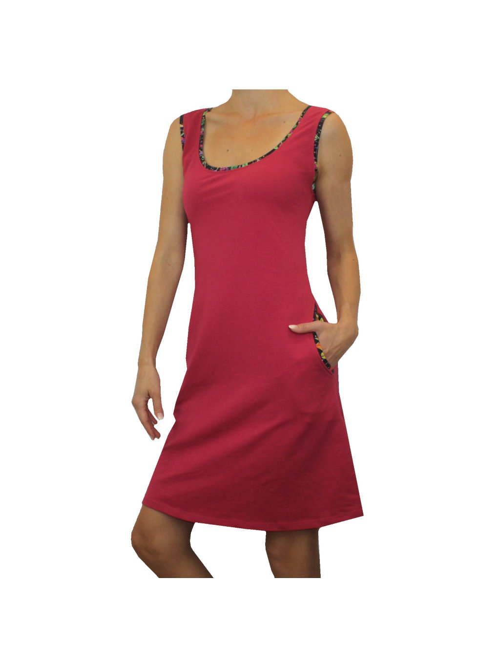 Šaty mají barevné pružné lemy v průramcích a kapsách.