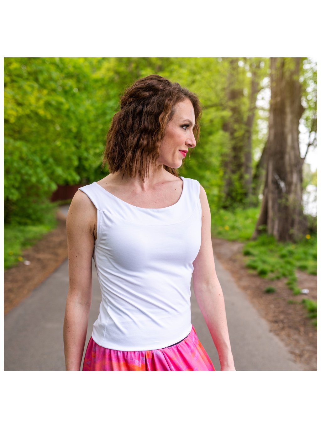 Dámské tílko využijete především na jaro/léto. Je bavlněné, pohodlné a přizpůsobivé. Tílko má lodičkový výstřih.