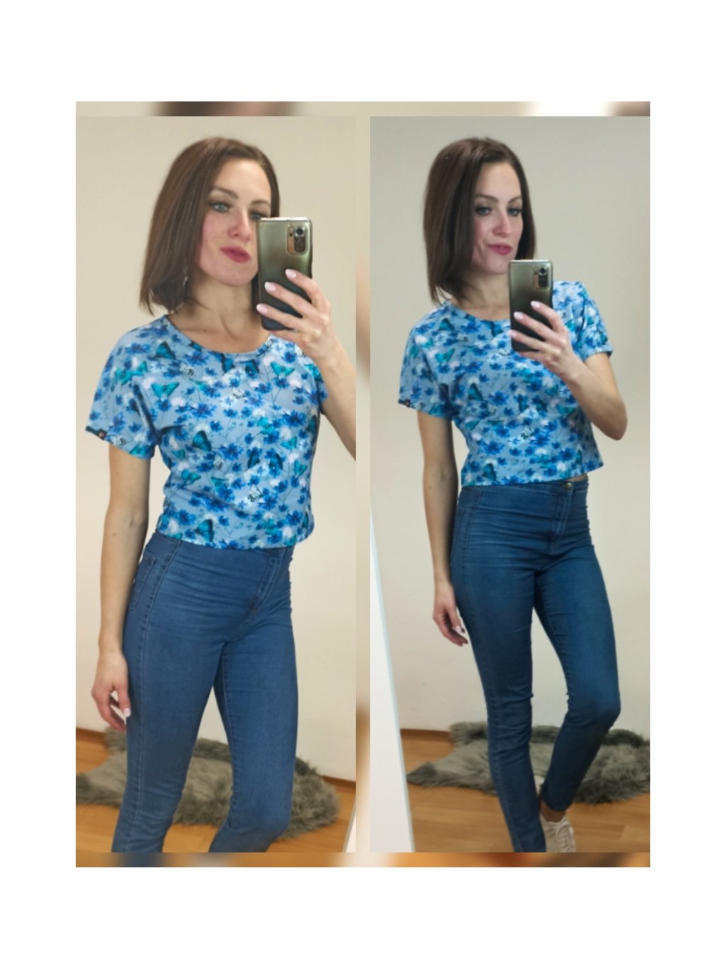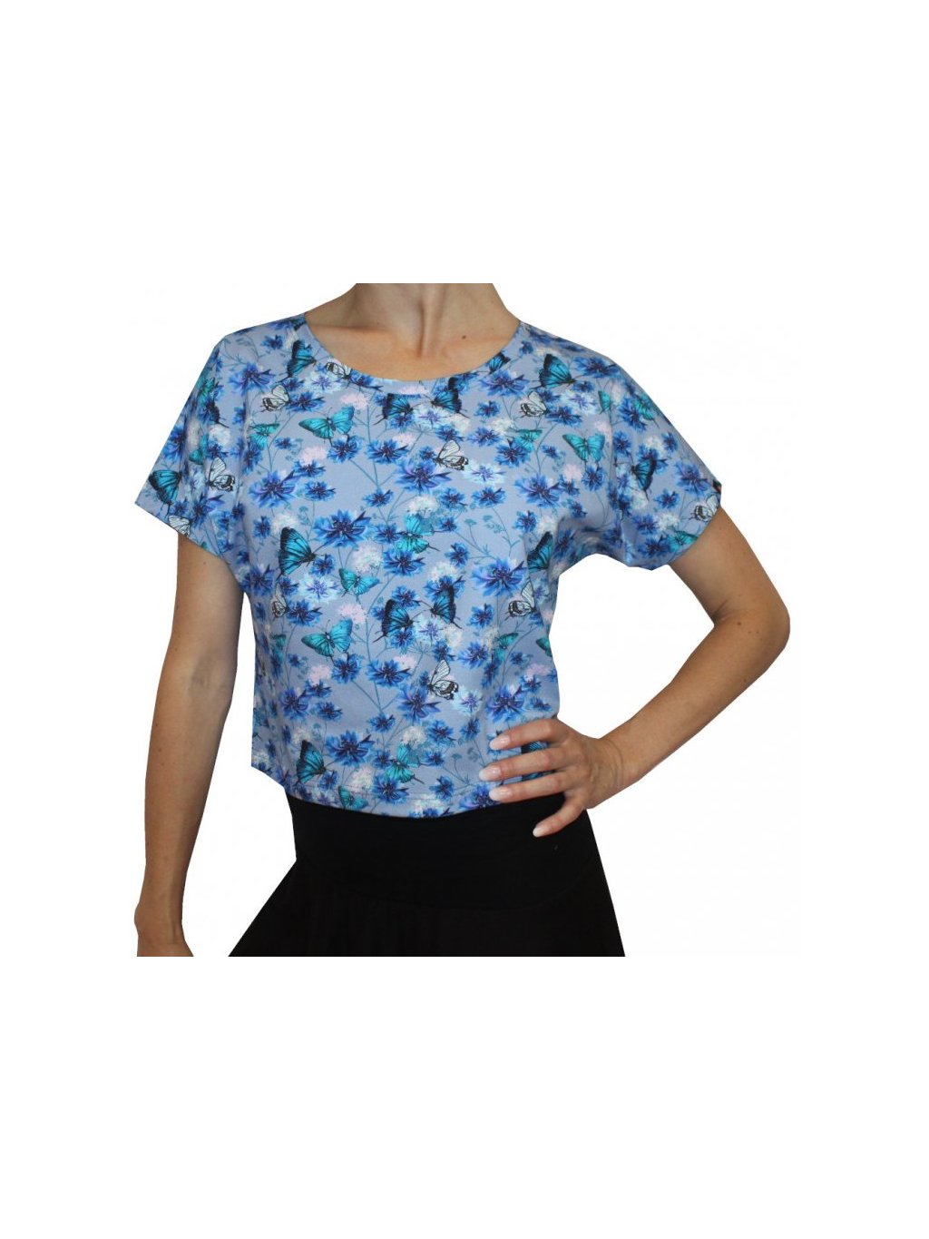 Dámský crop tričko je ušitý ze slabšího bavlněného úpletu, česká výroba 95% bavlna / 5% elastan.