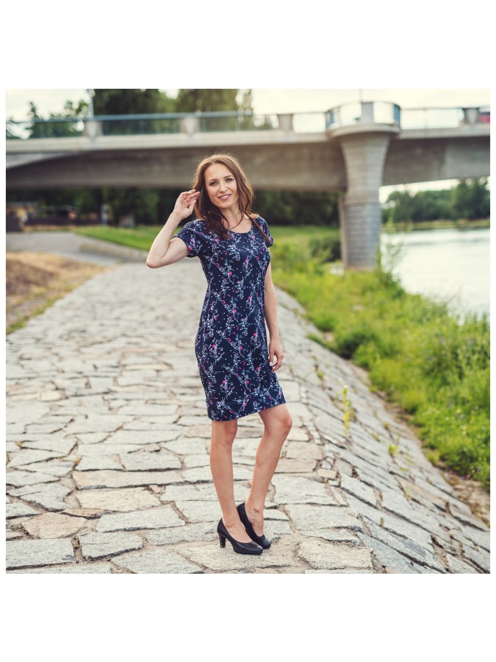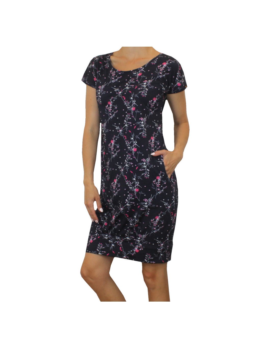 Dámské letní šaty TEZA, krátké rukávy, volnější balonkový střih, kapsy, bylinky