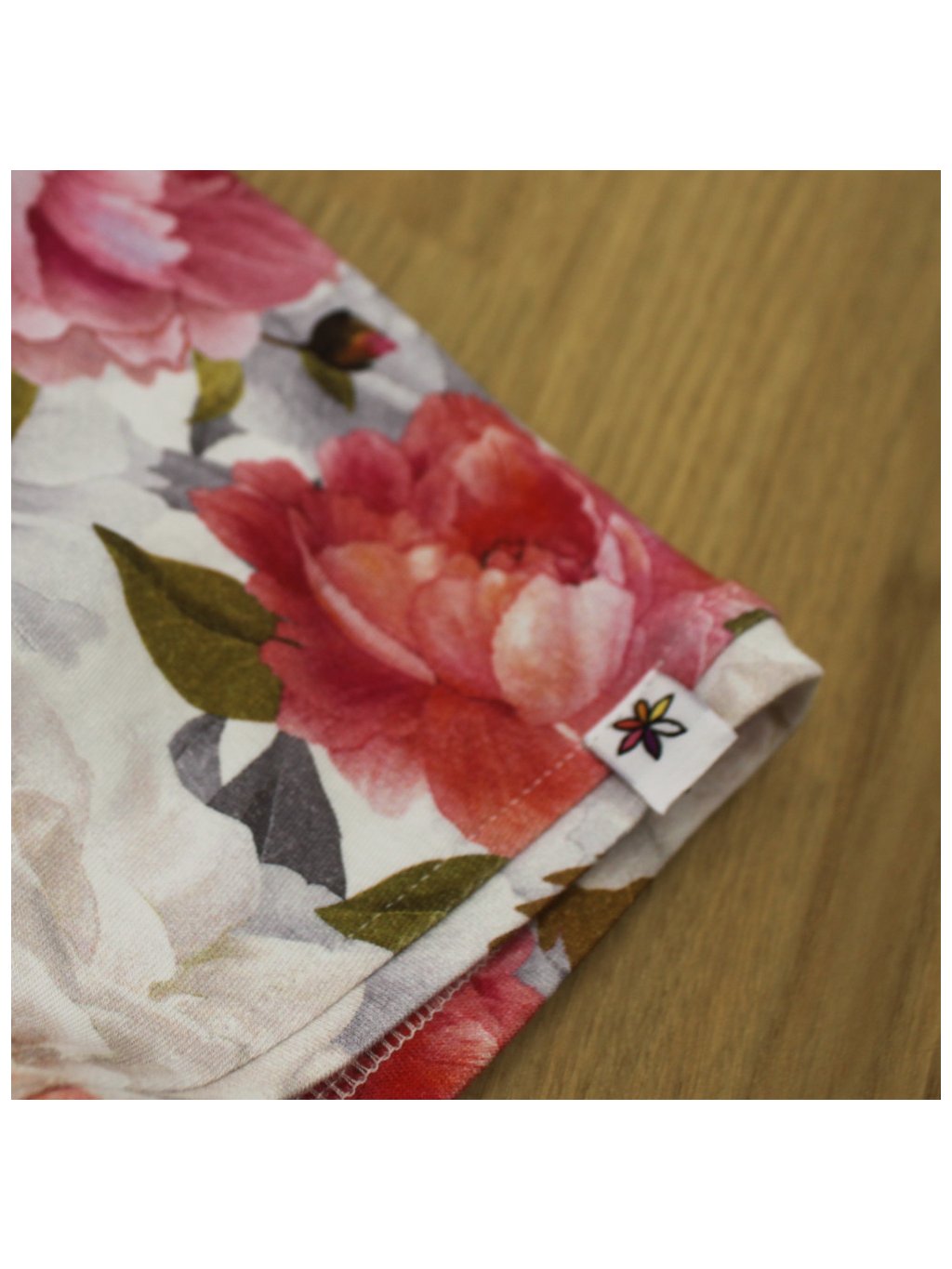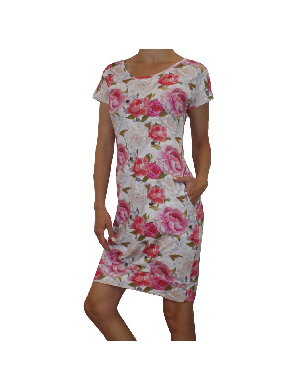 Dámské letní šaty TEZA, krátké rukávy, volnější balonkový střih, kapsy, pivoňky