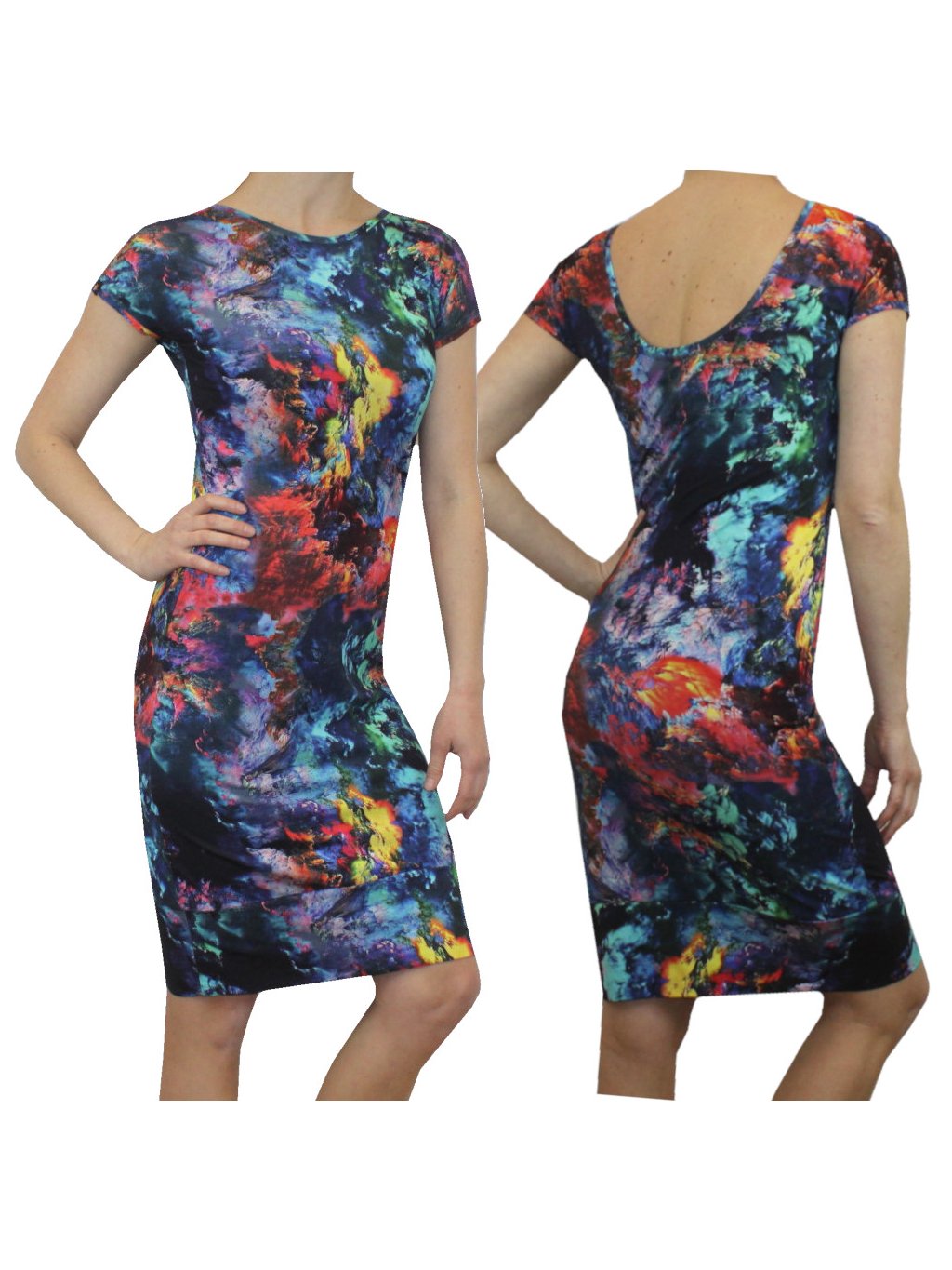 Dámské letní šaty s hlubokým výstřihem RENA, abstraktní