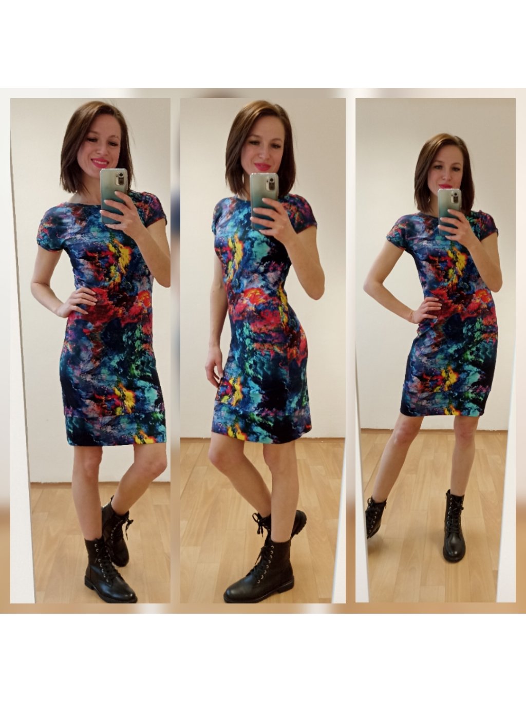 Tyto minišaty jsou úzkého střihu. Šaty mají hluboký výstřih, který se nosí na zádech. Lze ho nosit i na prsou.