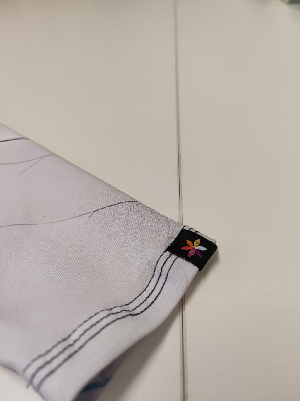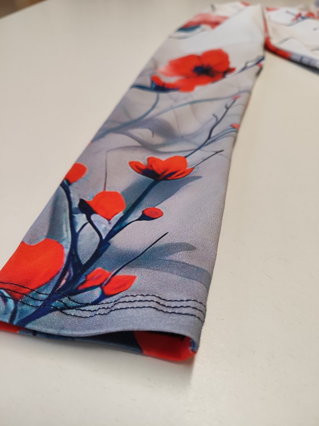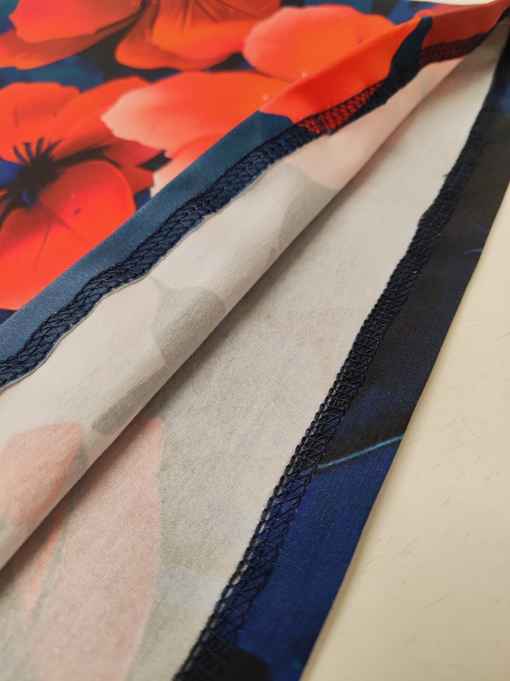Materiál je jednolícní bavlněný úplet středně silný. Pigmentový tisk.
