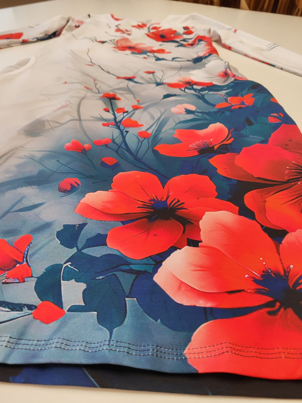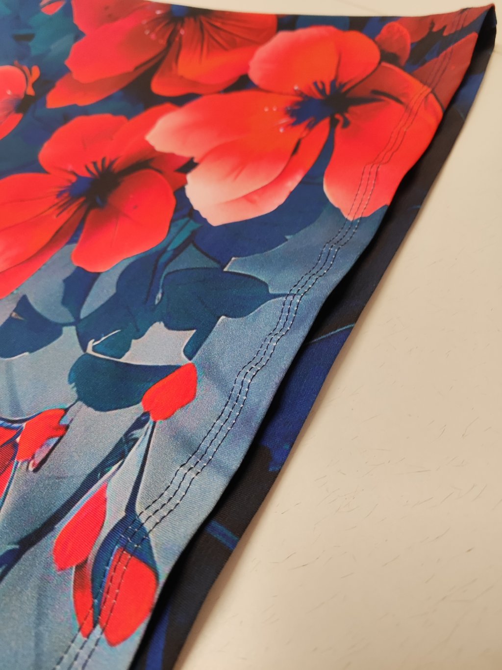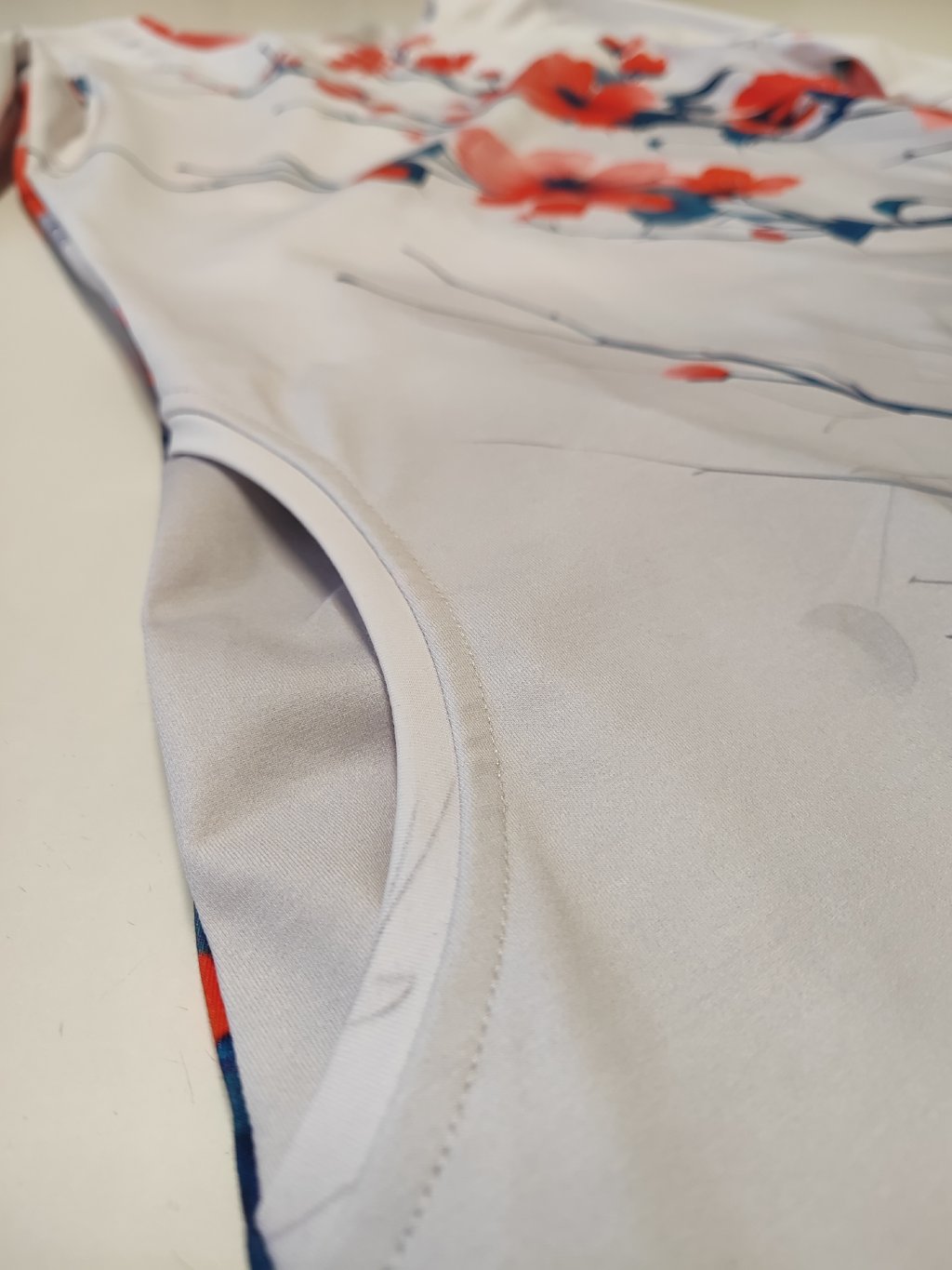 Materiál je jednolícní bavlněný úplet středně silný. Pigmentový tisk.