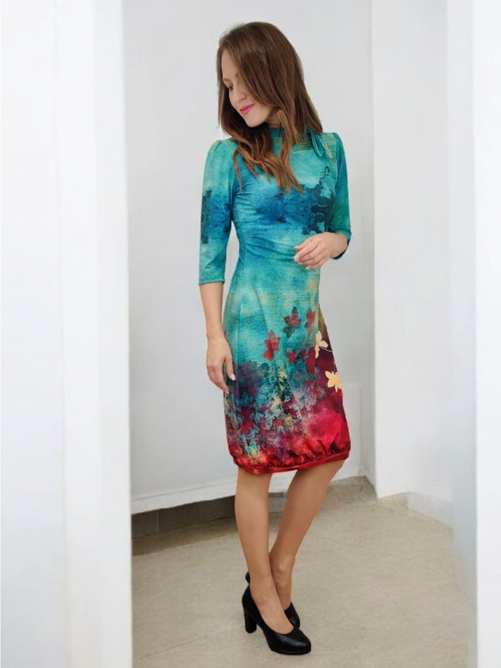 Dámské šaty BIANCA FIT, 3/4 rukávy, Smaragdový podzim