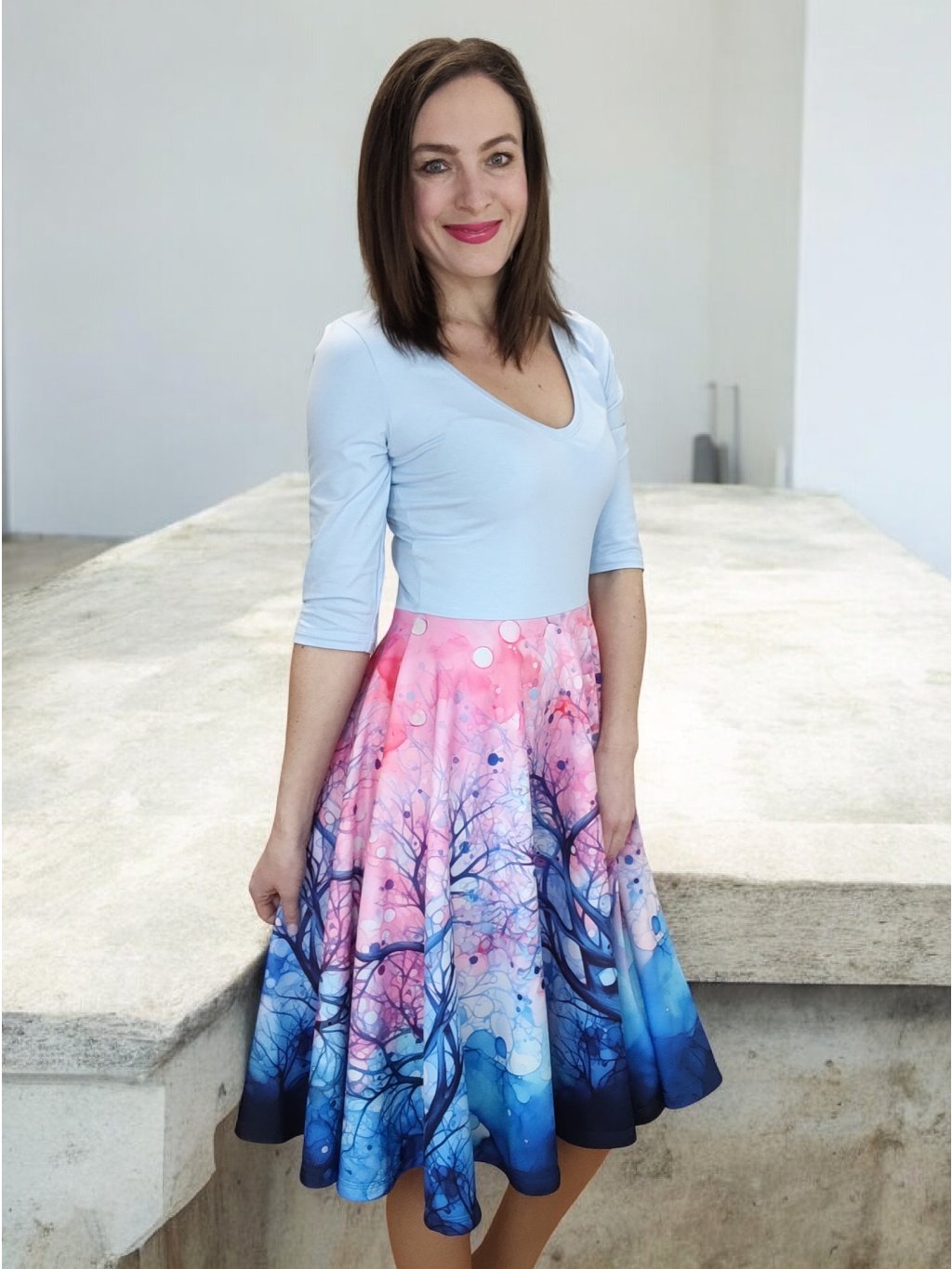 Šaty se hodí i do chladjěšího počasí - materiál na sukni je hřejivý, počesaný. Více o našich zimních šatech si můžete přečíst v našem blogu.