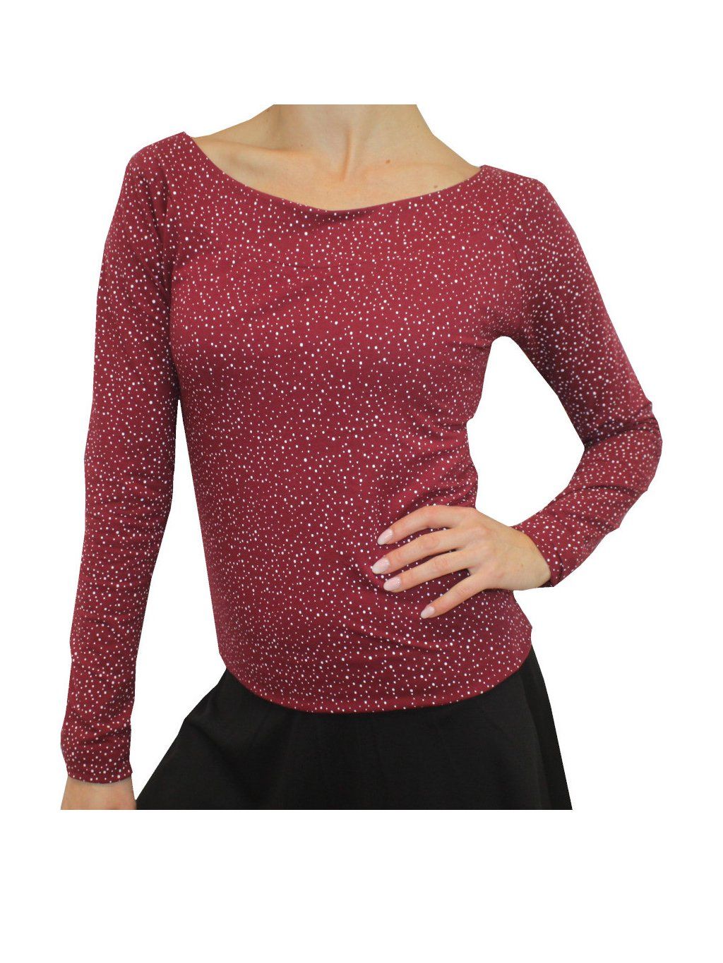 Dámské tričko LELA, dlouhý rukáv, bílé drobné puntíky
