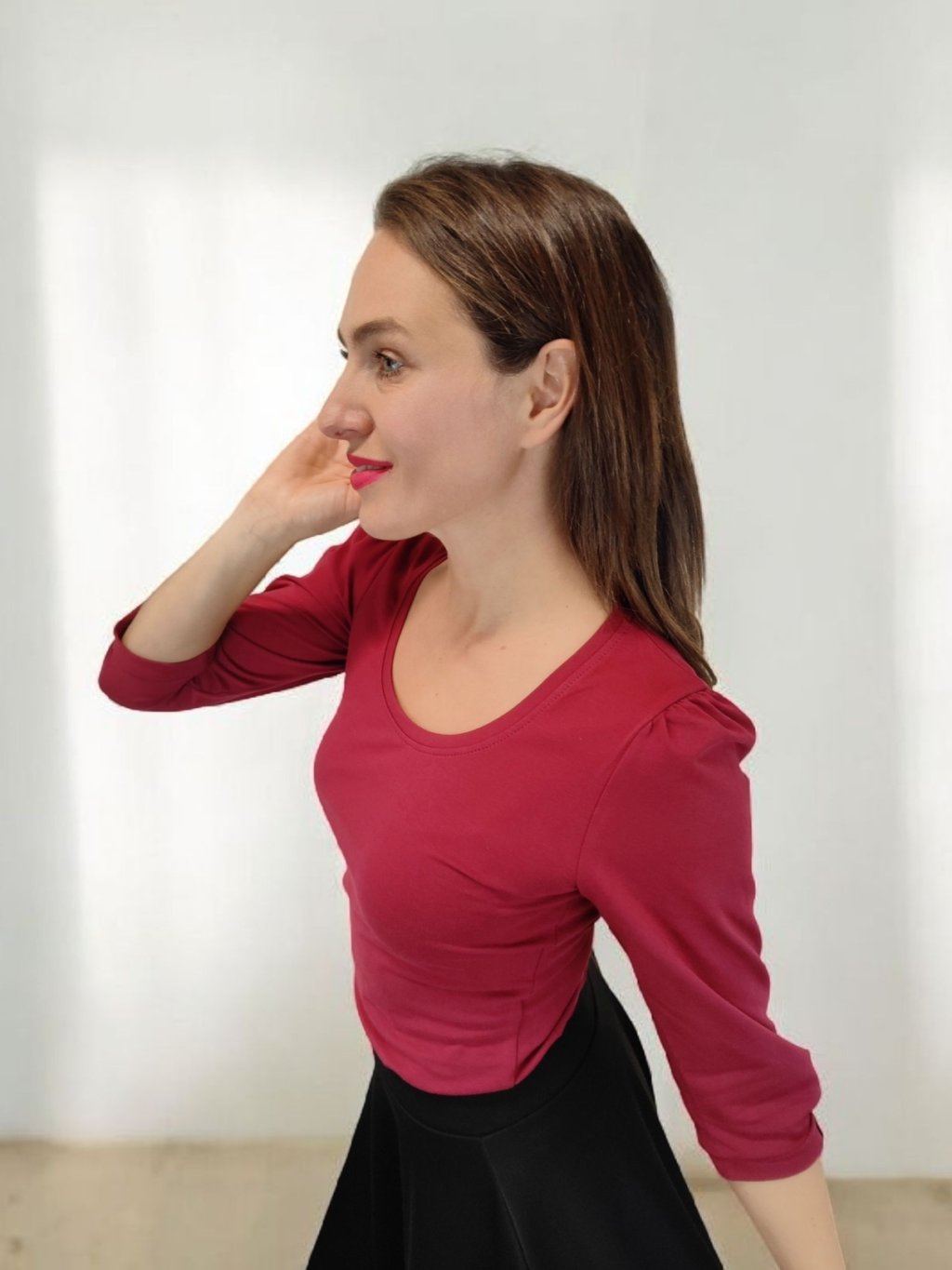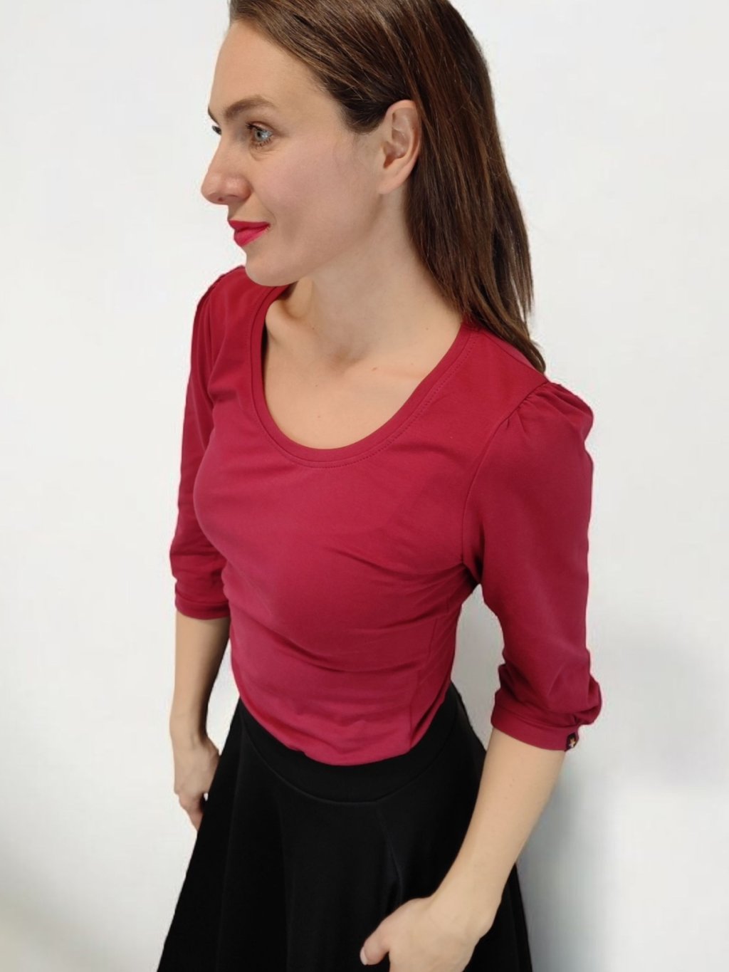 Tričko MALIA ocení ženy, které chtějí být elegantní a cítit se pohodlně zároveň. Můžete ho nosit zastrčené do sukně nebo volně k úzkým kalhotám. Vínová barva vynikne s černou, šedou i béžovou, ale krásně ladí také s přírodními odstíny sukní z kolekce Satysukne.cz.