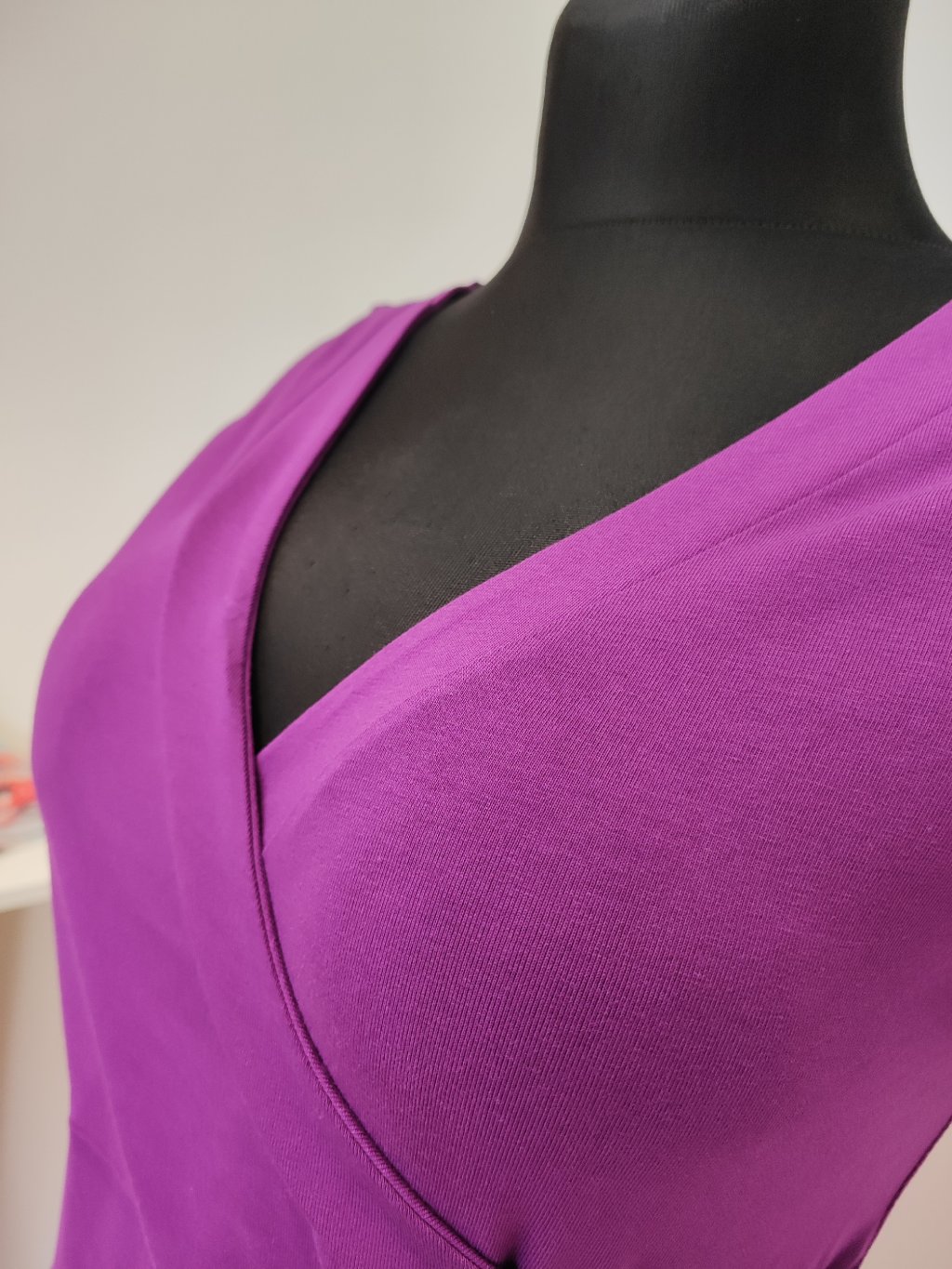 Tričko má výstřih do V, který opticky prodlužuje krk a lichotí dekoltu. Tričko je jemně projmuté a pěkně sedí na postavě. Pokud si přejete úpravu na míru, napište nám – rády vám vyhovíme.