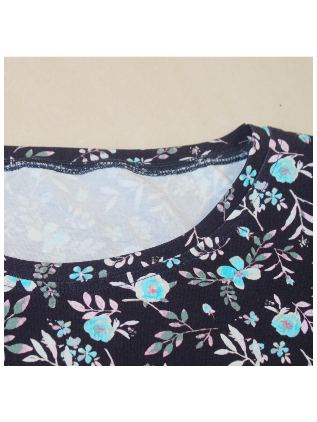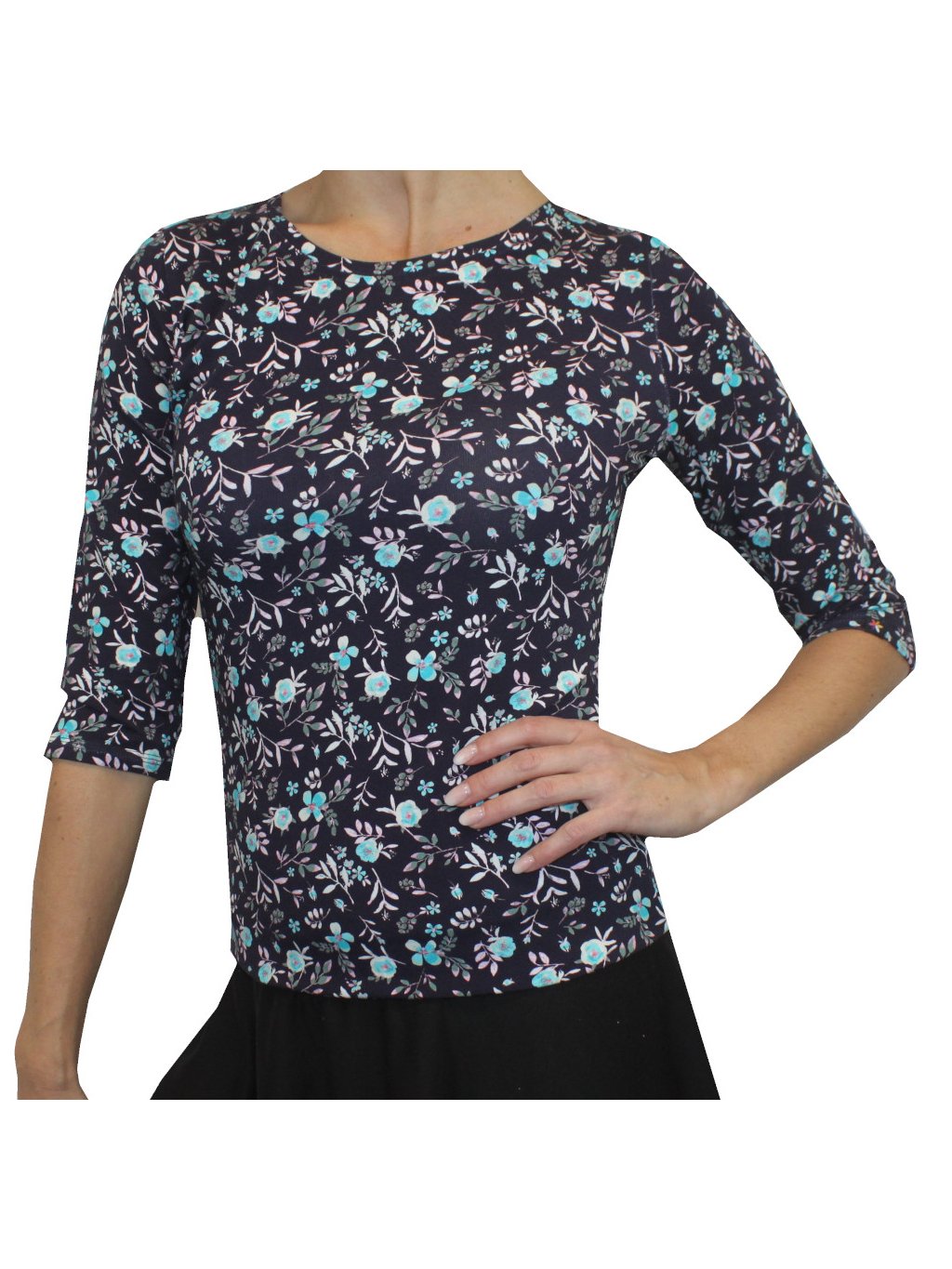 Dámské tričko SANJA s 3/4 rukávy, tmavě modré s květinkami