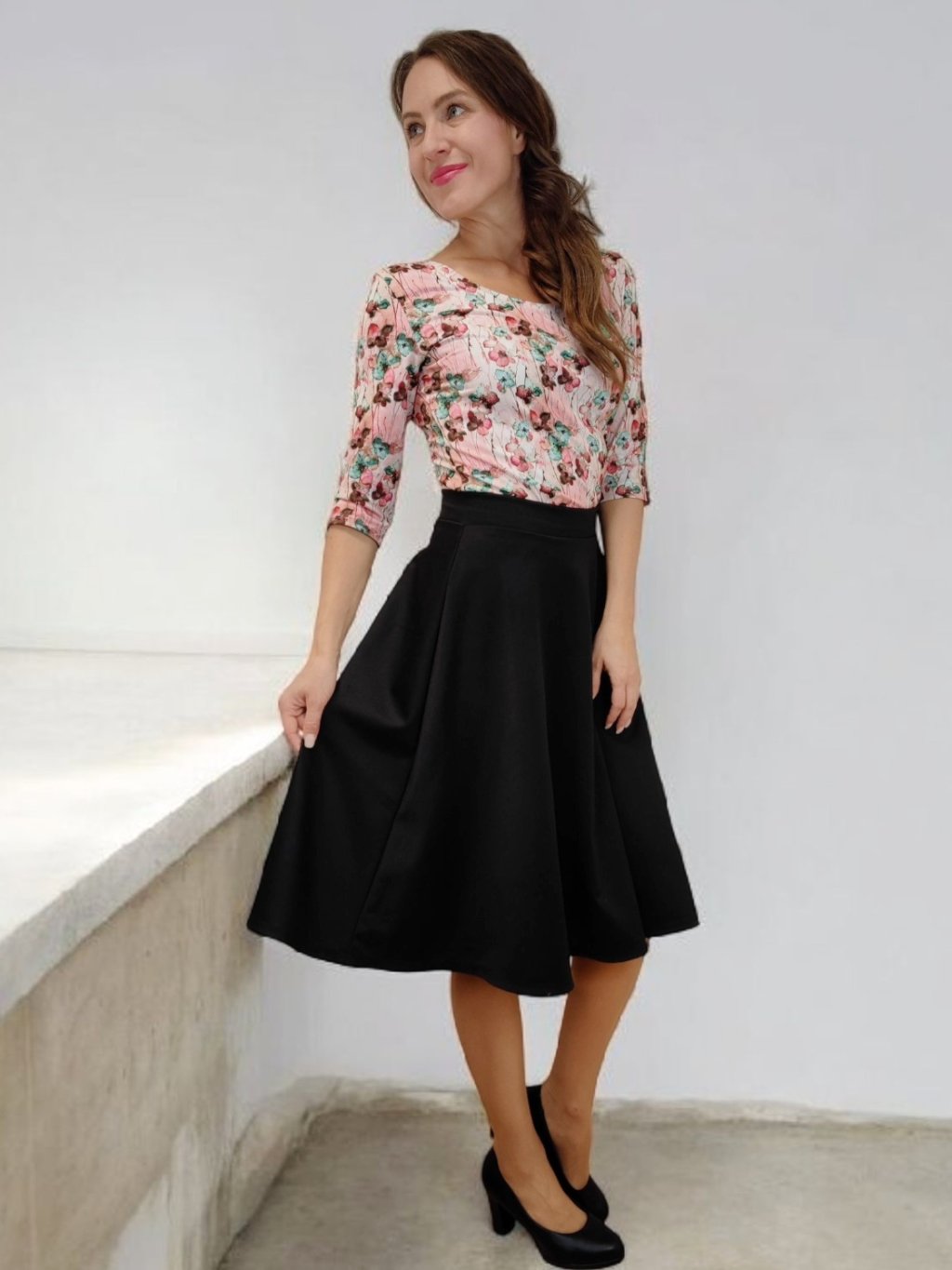 Letní outfit s pastelovou sukní a květovaným tričkem 💗🌿