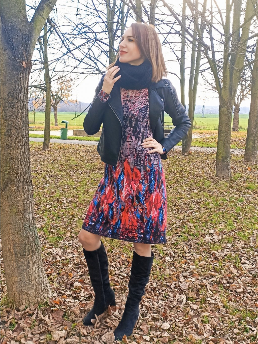 Dámské volné šaty OLIVIE, dlouhé rukávy, barevné listí