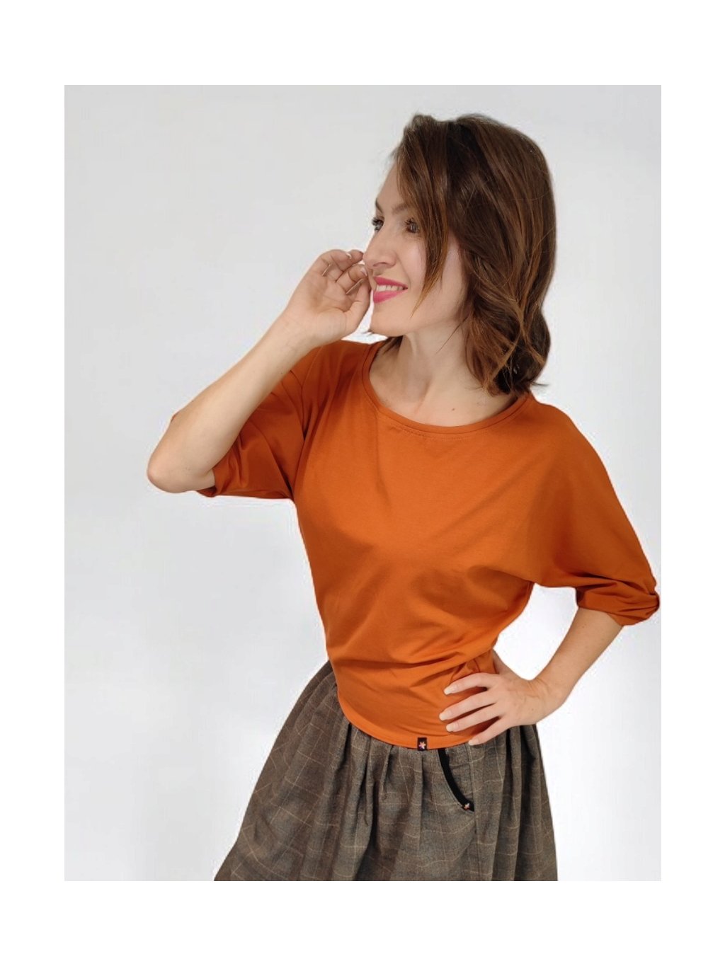 Dámské tričko volnějšího střihu budete milovat po celý rok. Tričko je v barvě Terracotta.