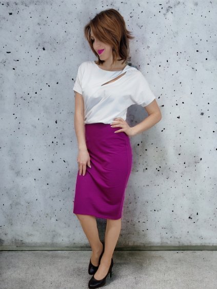 Střihově přes trup stejné, jen s jinak řešenou manžetou na rukávu je tričko LOCIKA. Zde v bílé barvě.