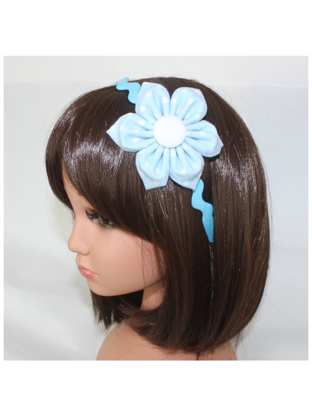 Dětská plastová čelenka s látkovým květem.