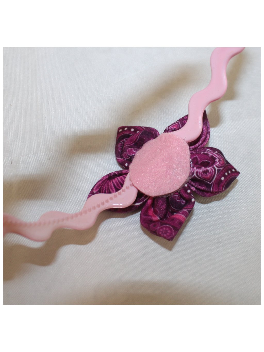Na plastové vlnité čelence je připevněná látková květina. Jak květina vypadá z rubové strany se můžete podívat na fotkách -