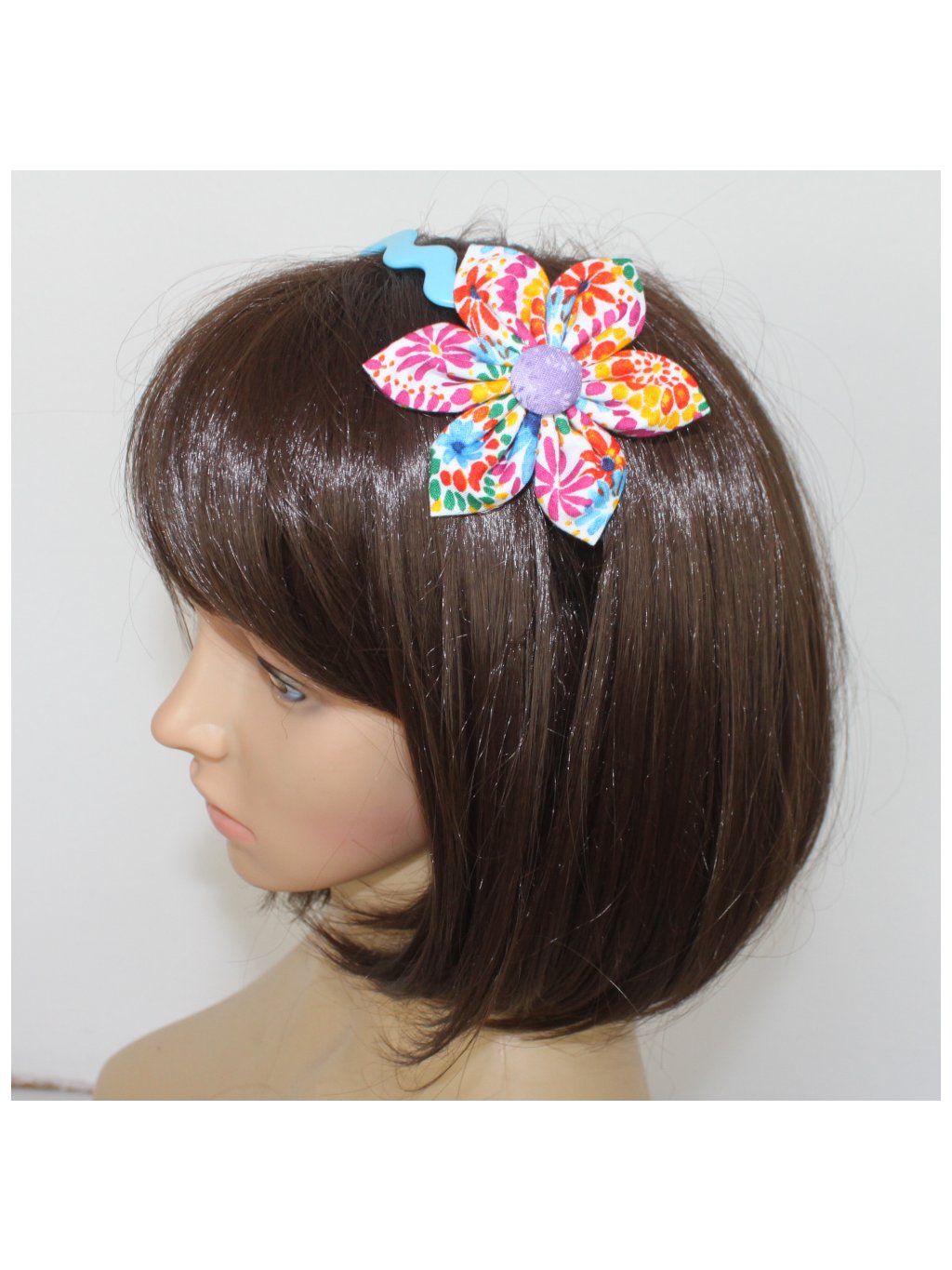 Dětská čelenka do vlasů, světle modrá s barevným květem