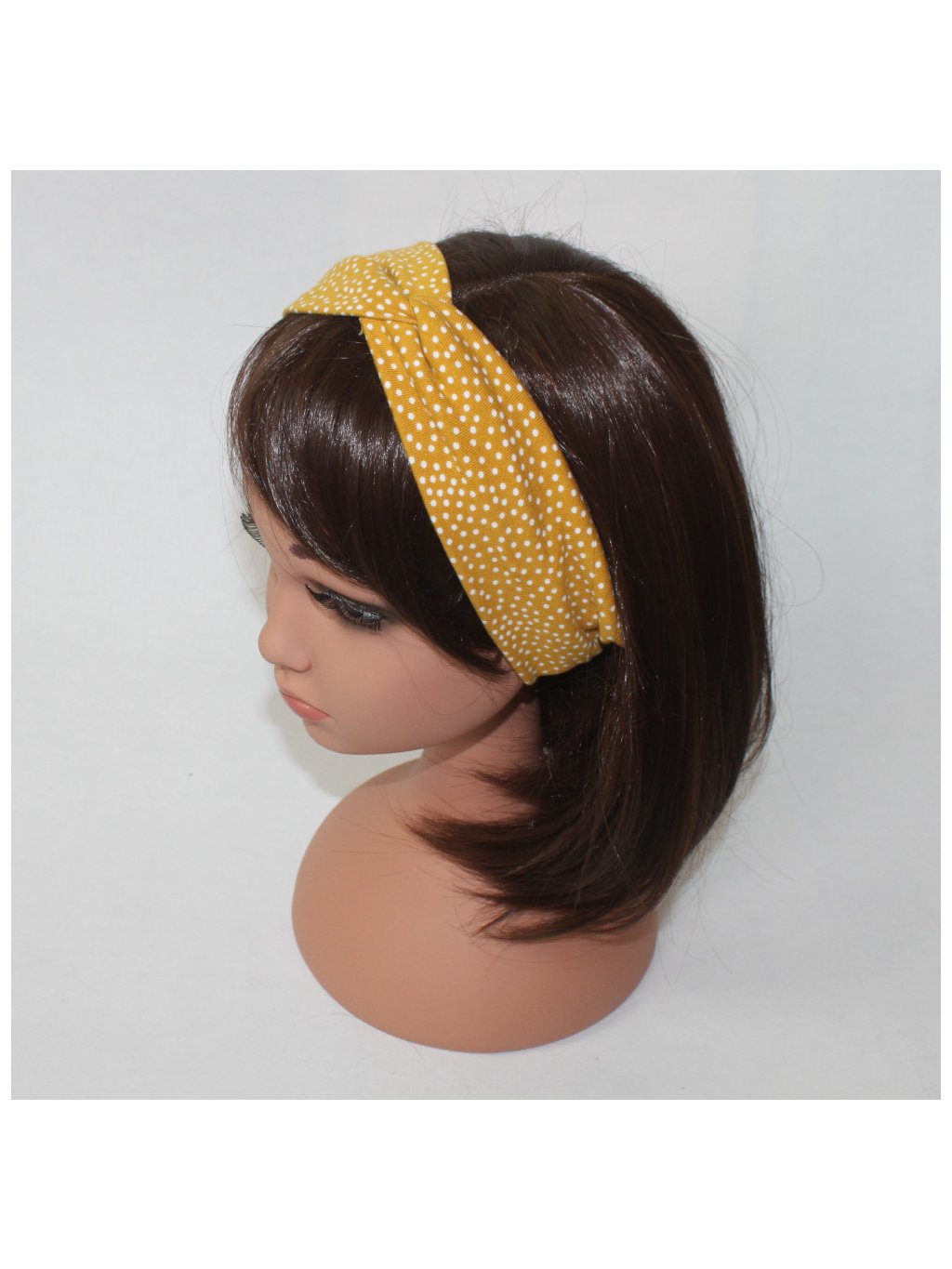 Dětská látková čelenka do vlasů, žlutá s puntíky