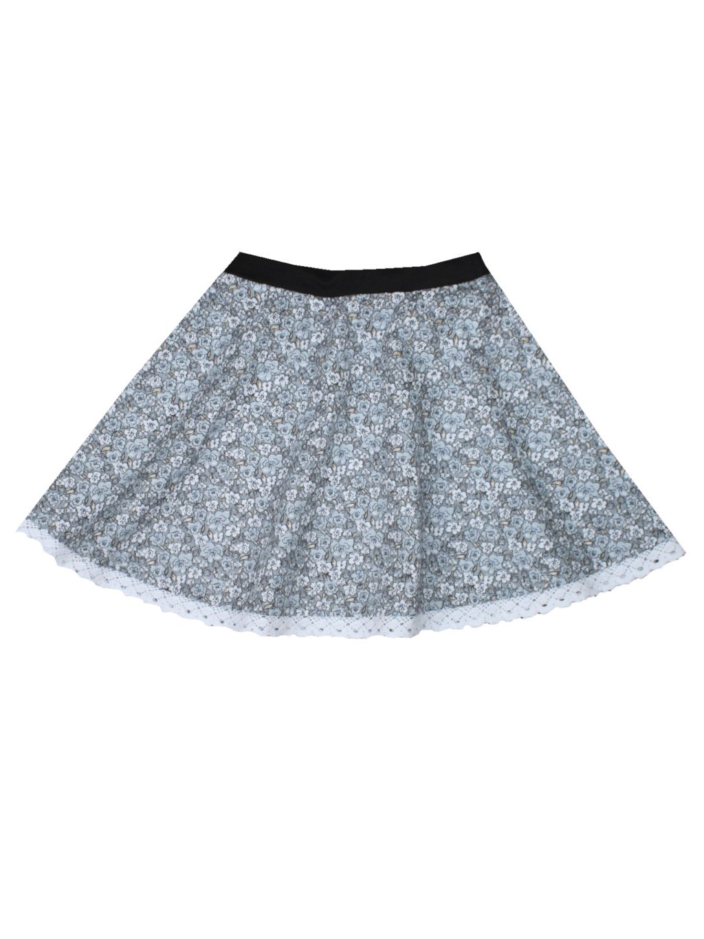 Dětská půlkolová sukně / dívčí sukně bavlněná, šedá s květy
