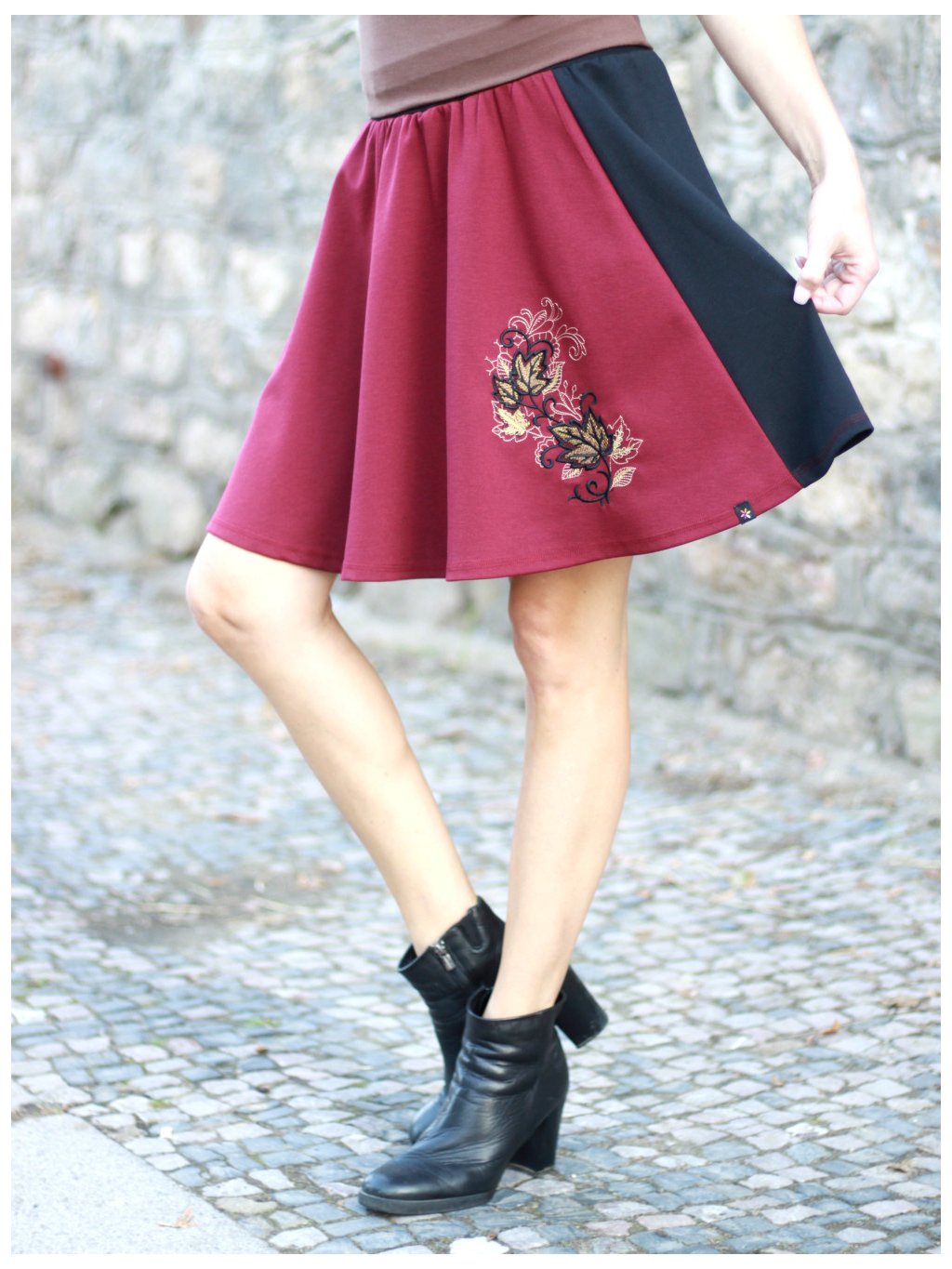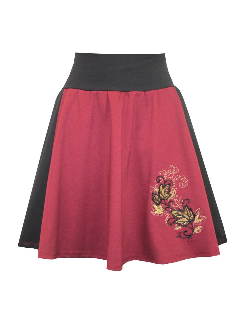 Vínovo-černá dílová půlkolová sukně DANIELA, listy