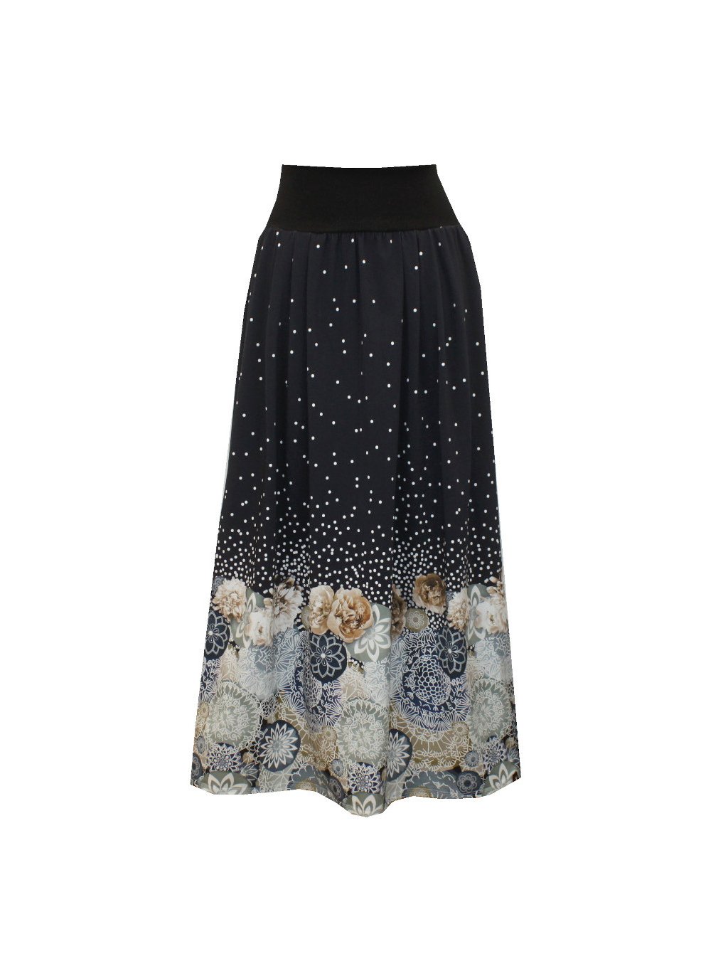 Dlouhá bavlněná sukně, sklady, puntíky a vzory
