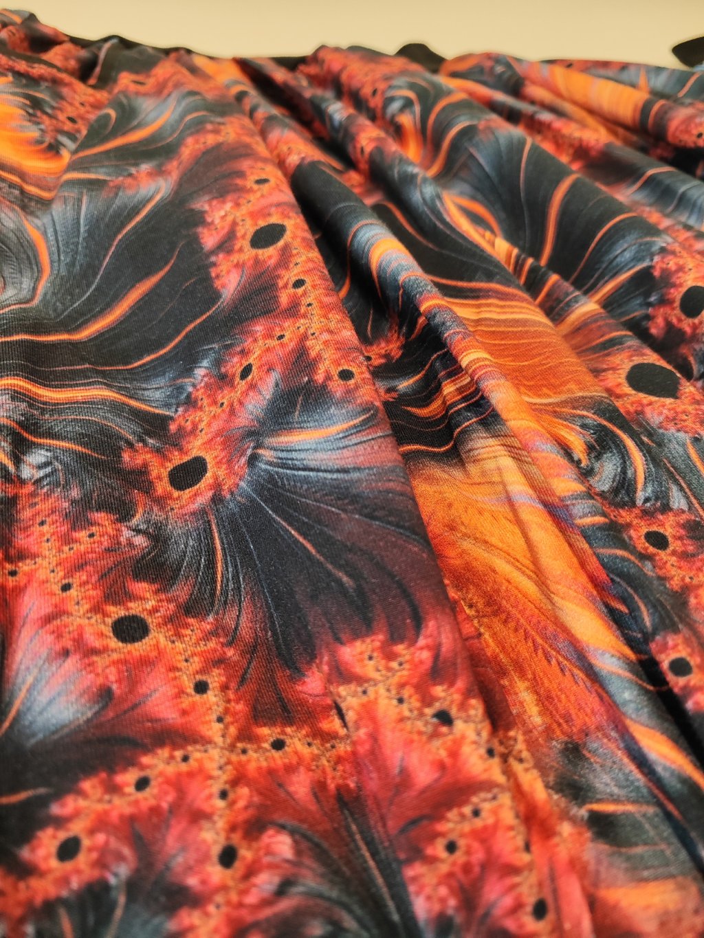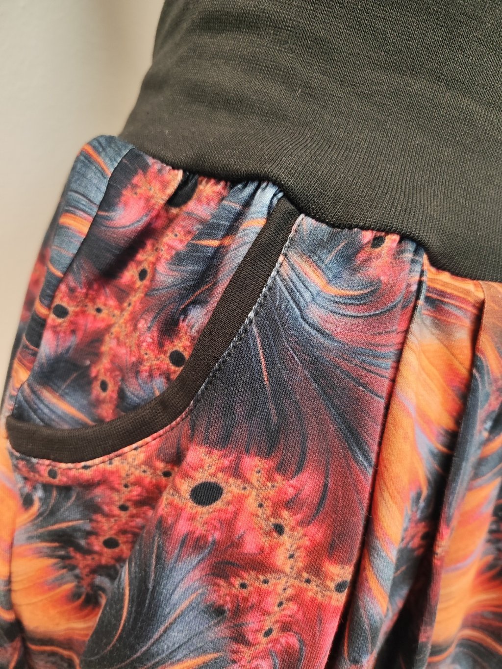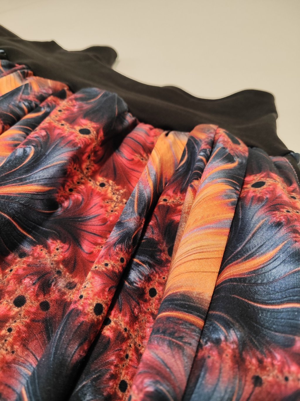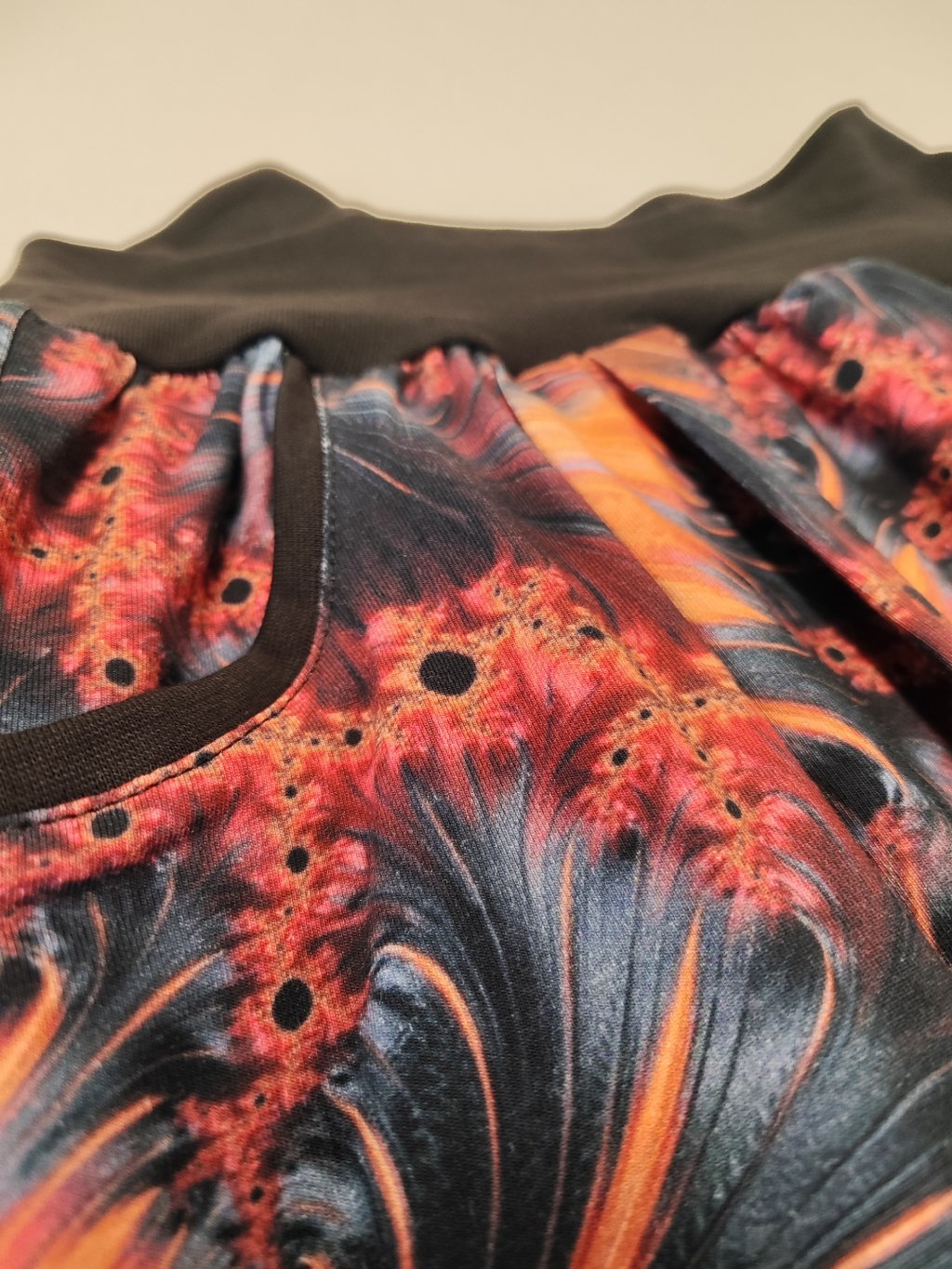 Materiál je středně silný bavlněný úplet s digitálním potiskem.