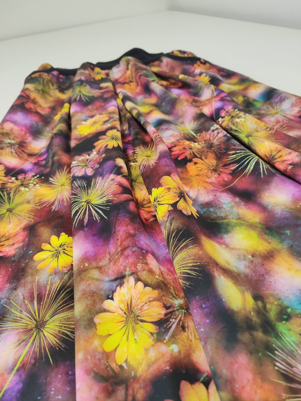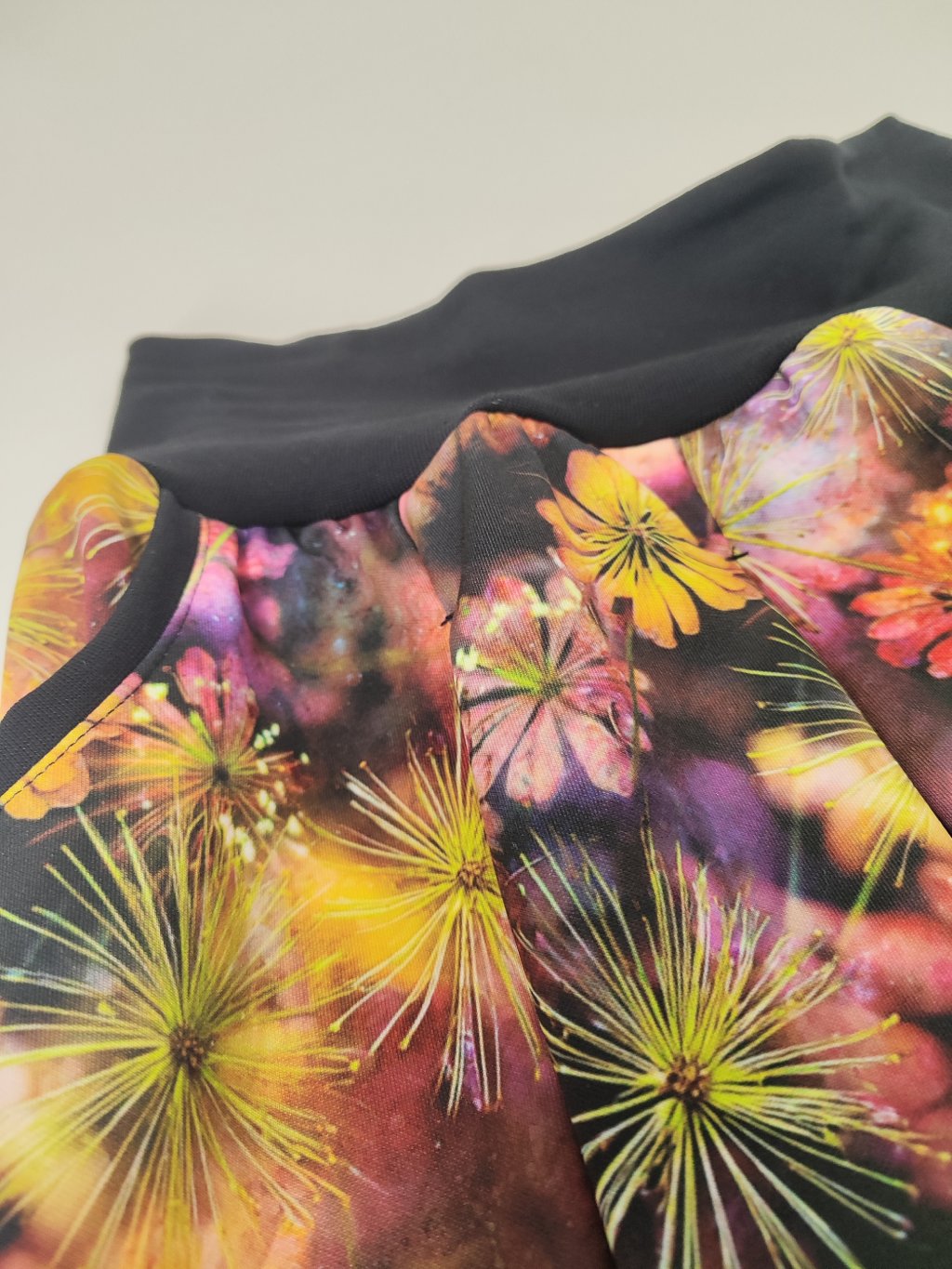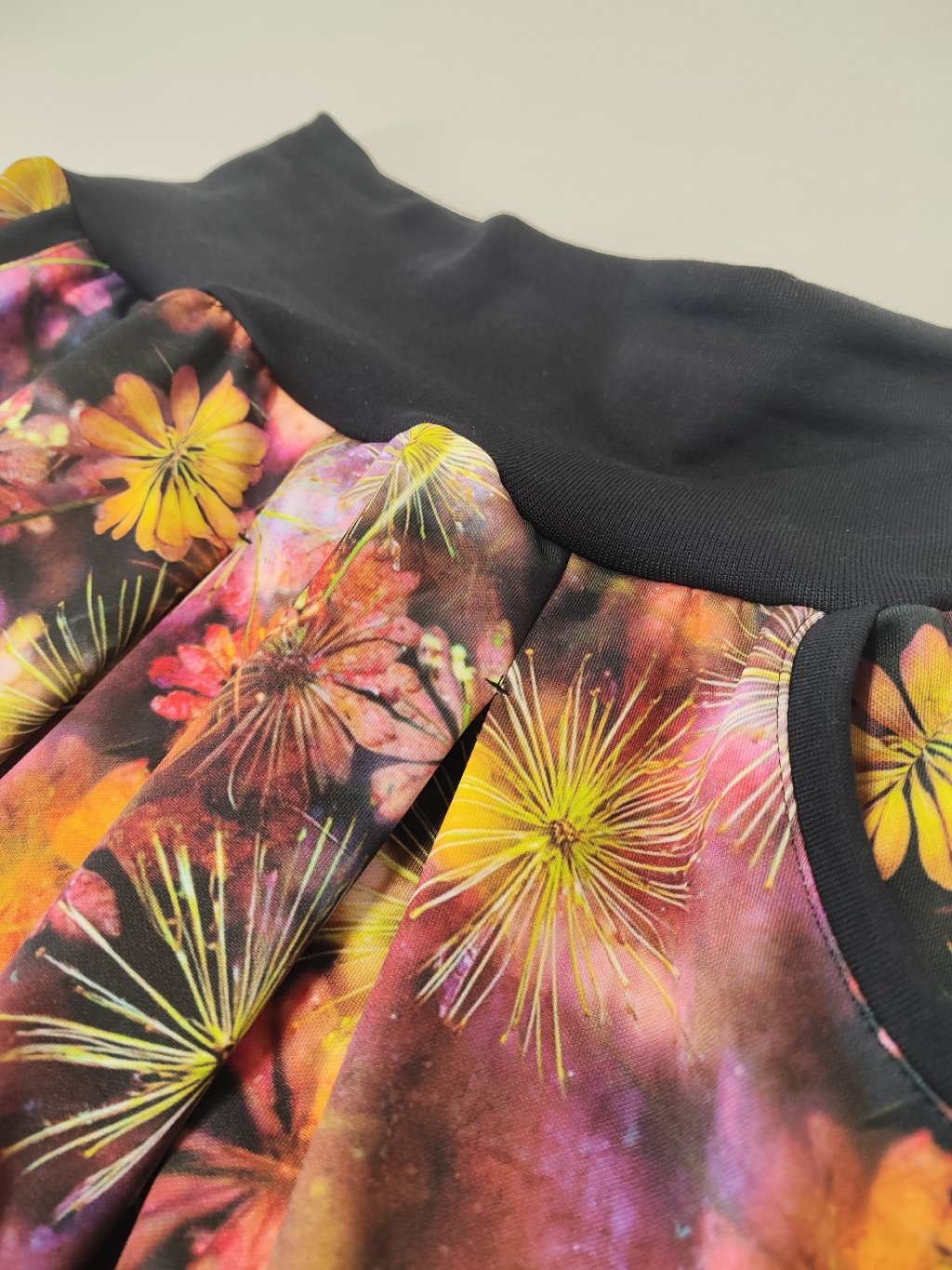 Sukně je ušitá ze silnějšího materiálu - materiál je polyesterový. Z rubu počasaný - na zimu se skvěle hodí. Tento materiál má skvělé vlastnosti - je stálobarevný, pěkně drží tvar a je rychleschnoucí a nemačkavý. Více o materiálu se dozvíte v odstavci O polyesteru s respektem k přírodě.