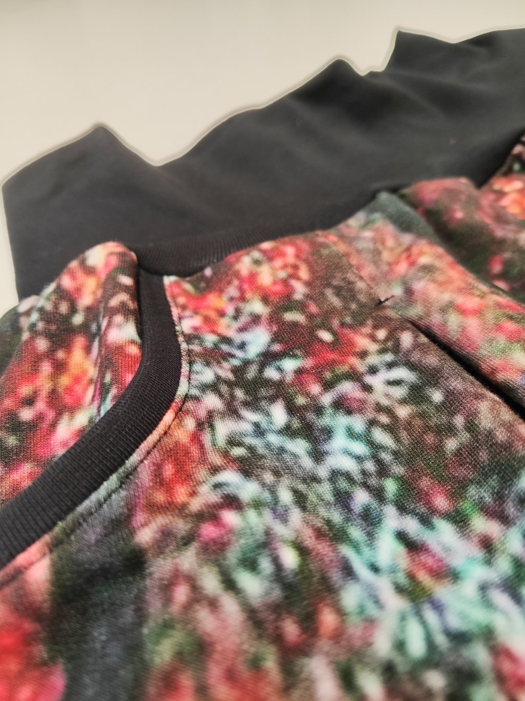 Materiál je mikinovina - silnější bavlněný úplet s digitálním potiskem - máků.