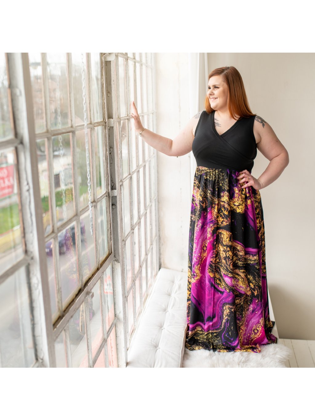 Dlouhé dámské šaty SARAH, překřížený výstřih, Modal, fialové acháty