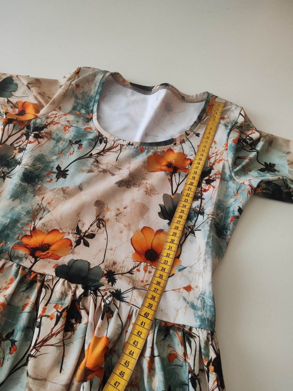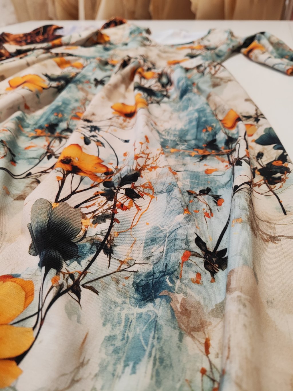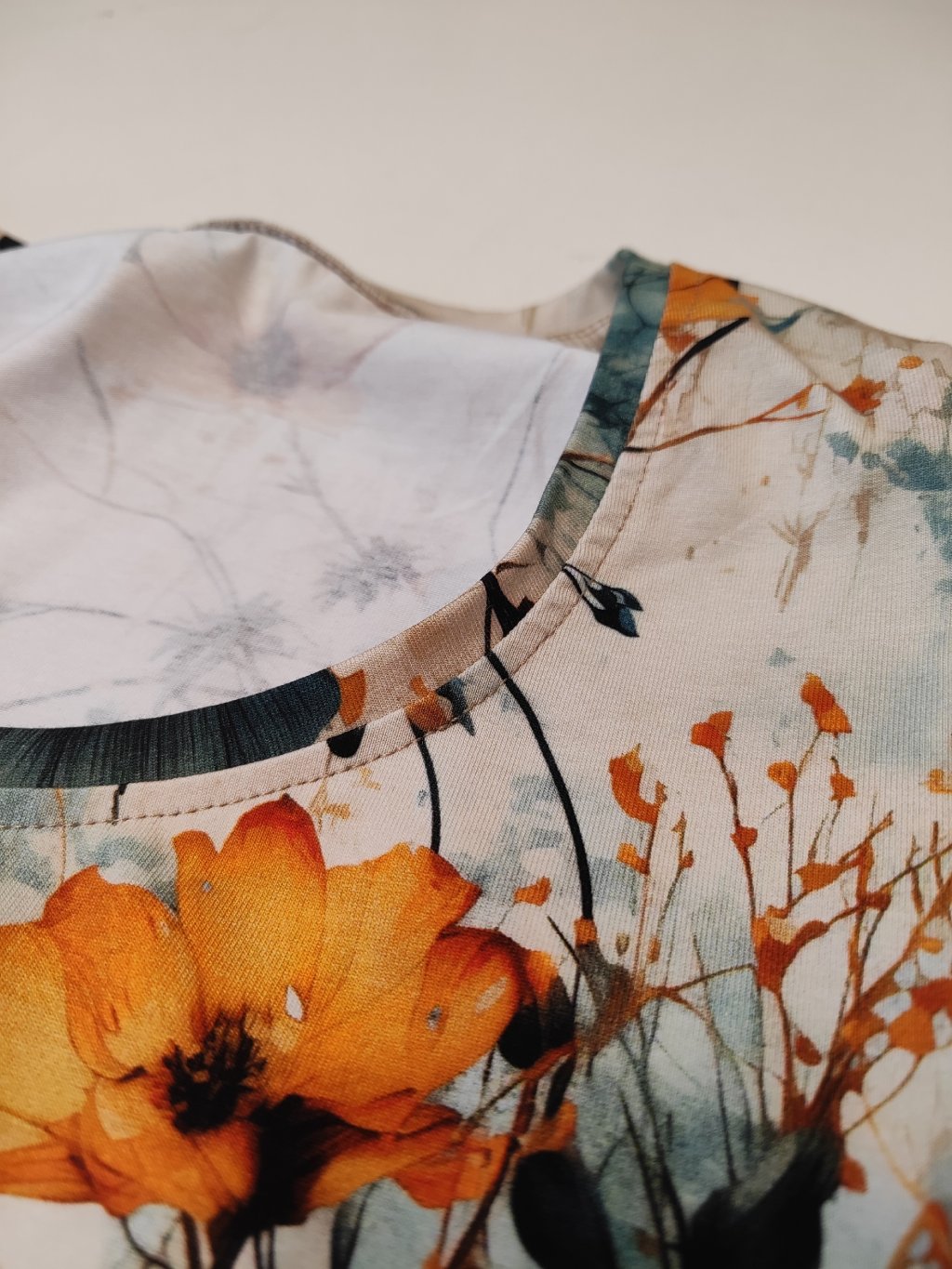 Podzimní motiv Podzimní něha v jemných tónech připomíná padající listí a kouzlo klidného podzimního dne. Barvy působí romanticky a jemně, a přitom zůstávají nadčasové. Kombinace vzoru a bavlněného materiálu vytváří pocit lehkosti a pohodlí při každém pohybu. Tyto šaty jsou ideální pro podzimní dny, kdy chcete vypadat elegantně a cítit se přitom pohodlně.
