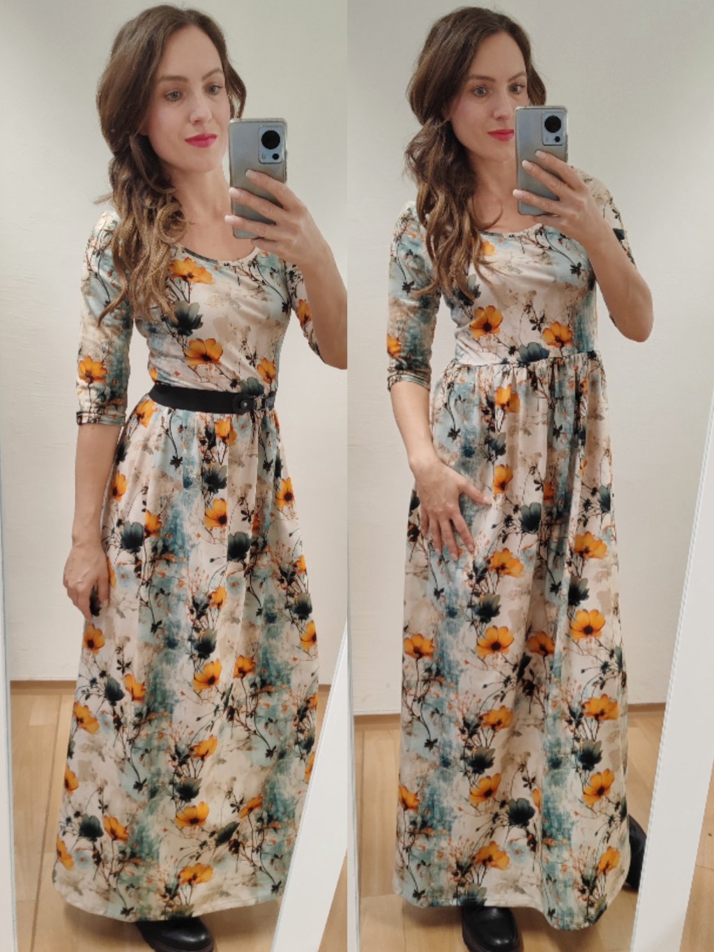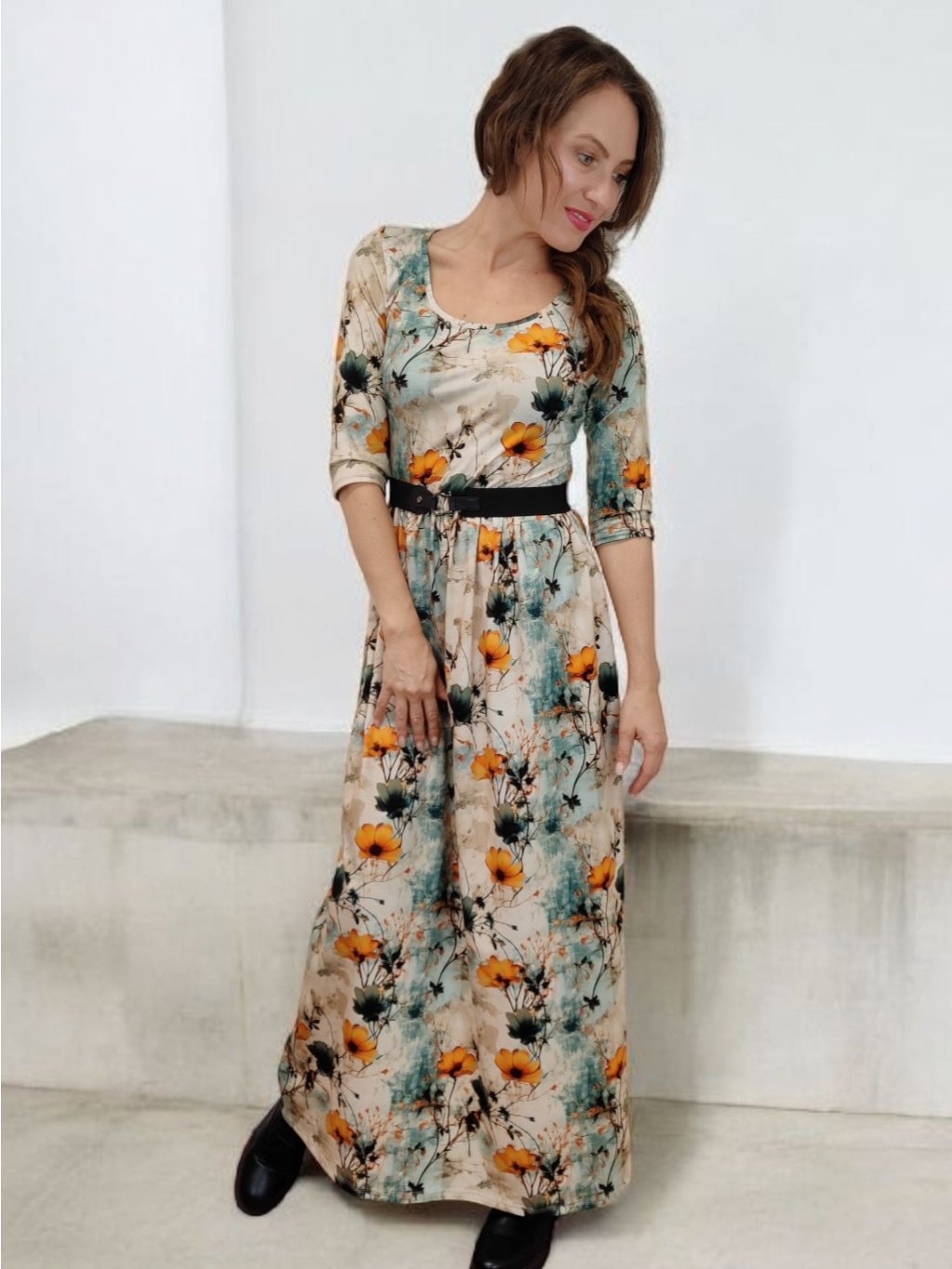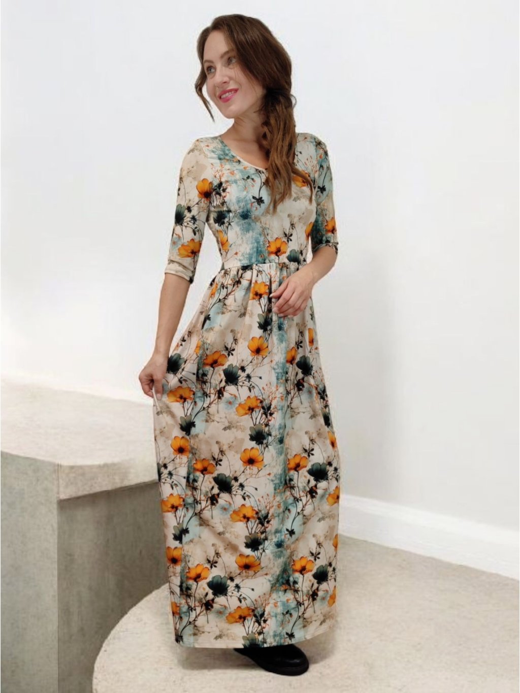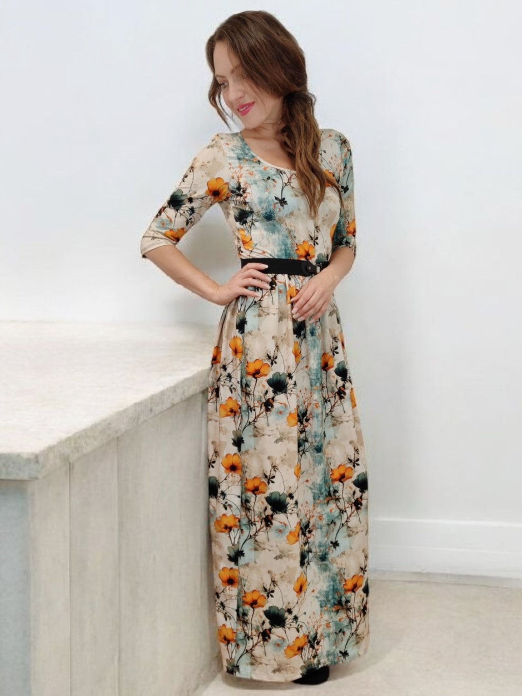 Dlouhé šaty THYMIA, 3/4 rukávy, Podzimní něha
