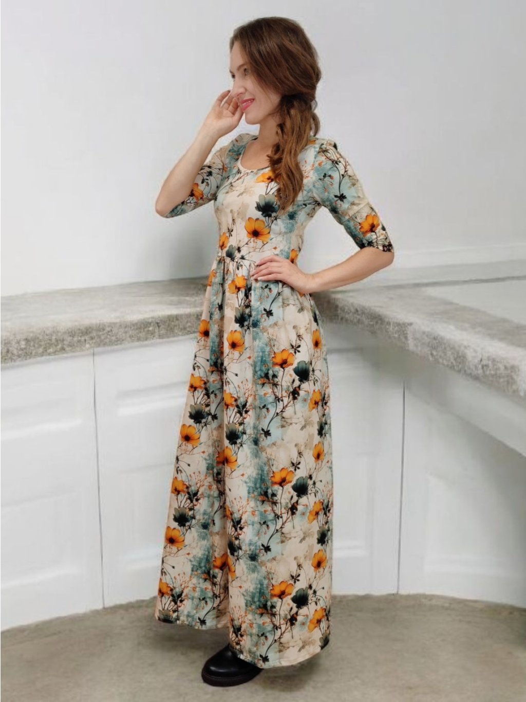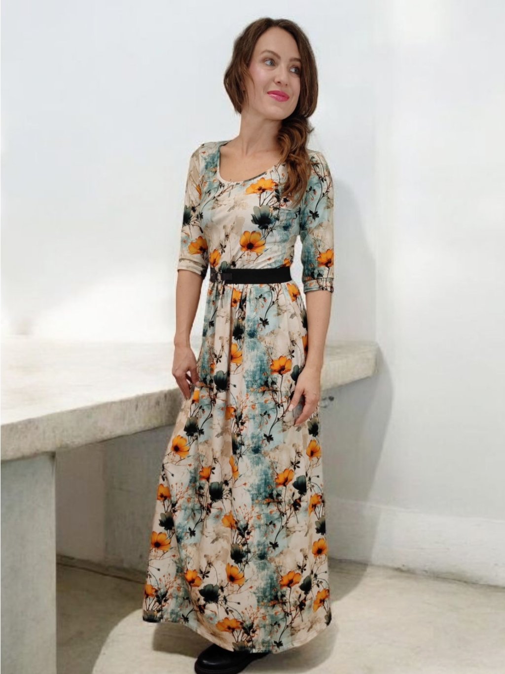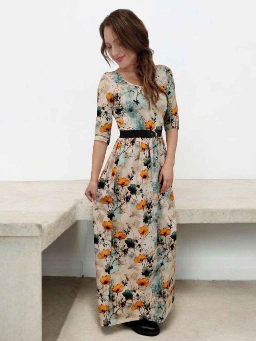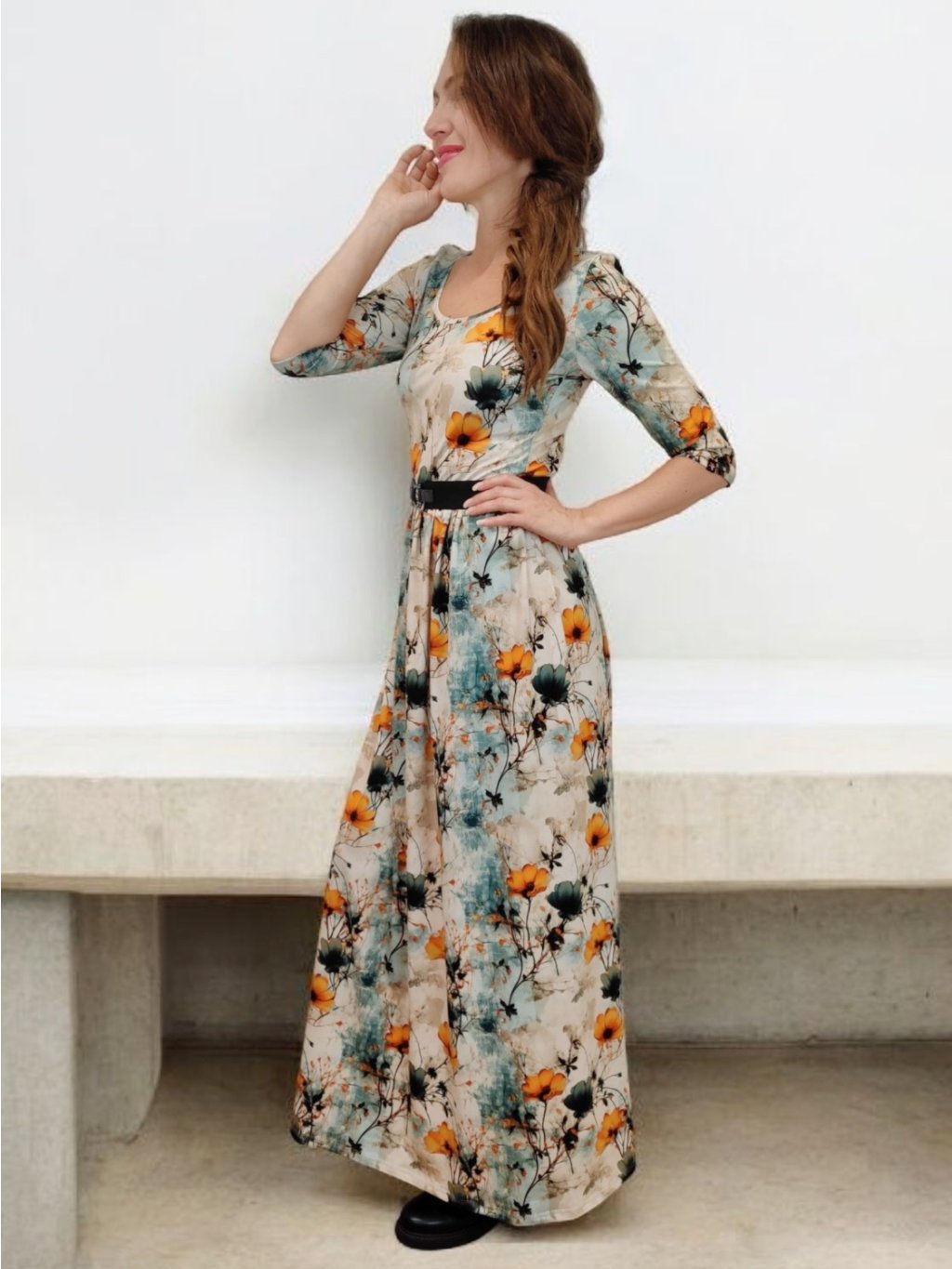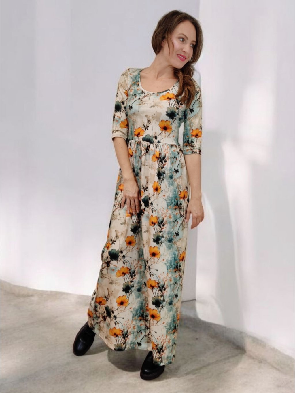 Dlouhé šaty THYMIA, 3/4 rukávy, Podzimní něha