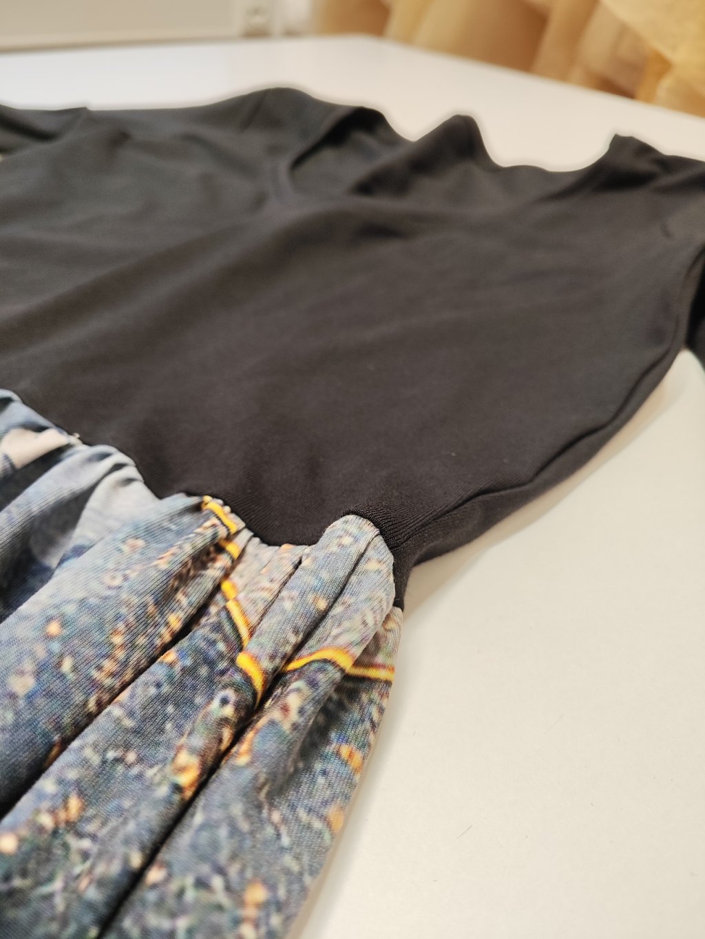 Suknice je splývavý polyester. 90%poylester/ 10% elastan.