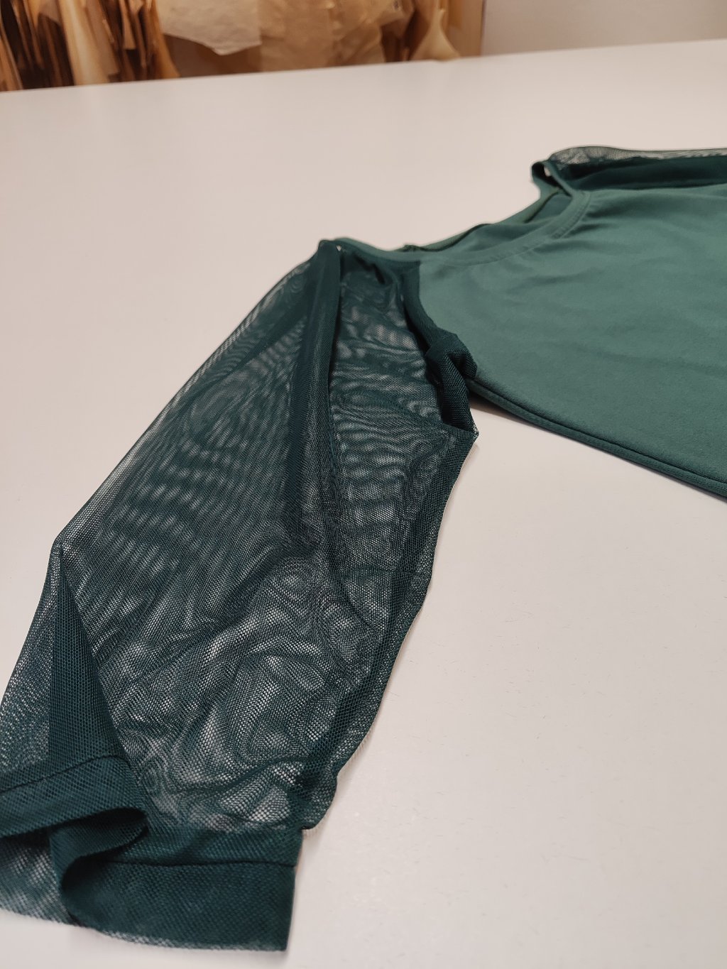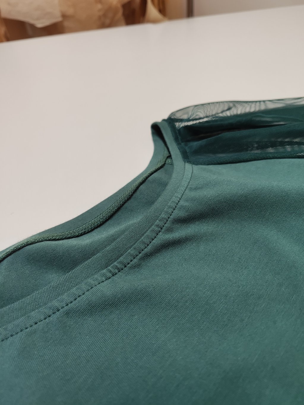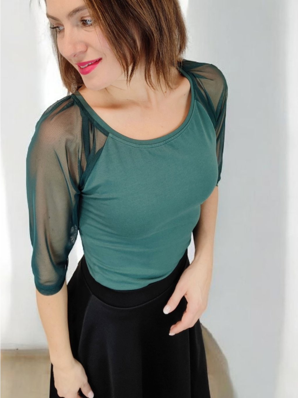 Rukávy jsou raglánového střihu ze šifonového materiálu.
