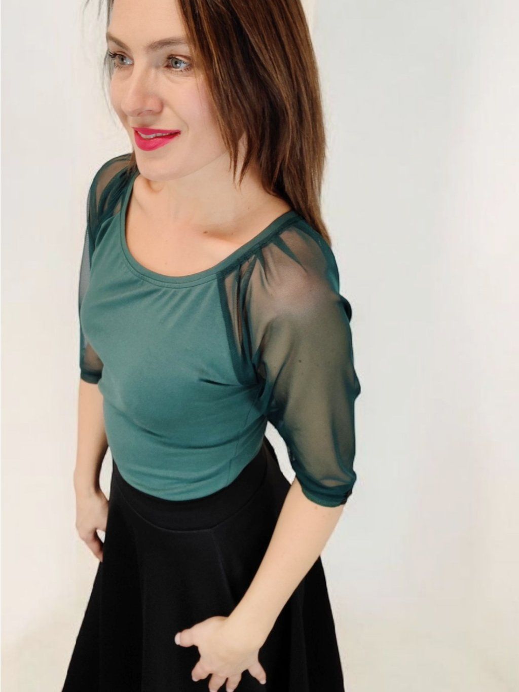 Tričko ELWEN se dobře kombinuje se sukní do pasu, kolovou sukní i kalhotami.