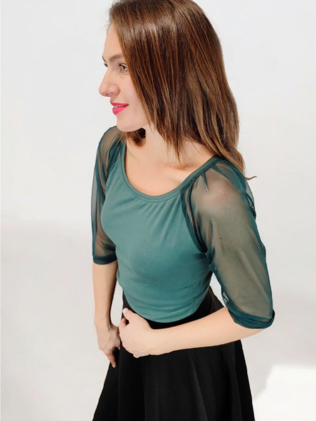 Elegantní tričko ELWEN, šifonové 3/4 rukávy, Dark willow