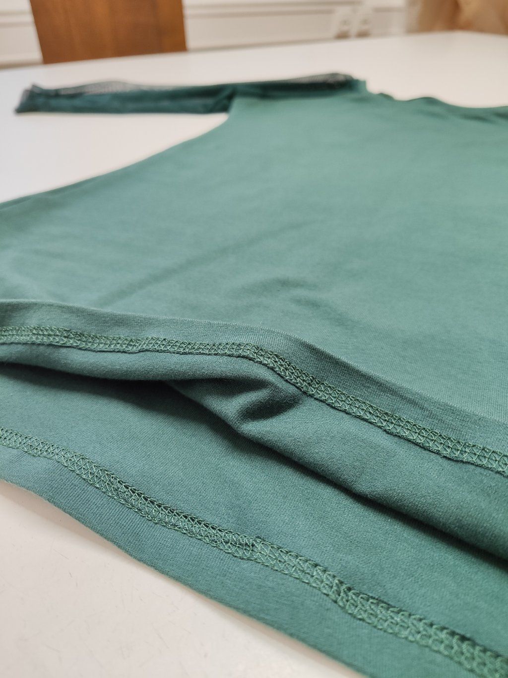 Hlavním prvkem modelu ELWEN jsou 3/4 rukávy ze šifonu, které dodávají tričku vzdušnost a eleganci. Lehce průsvitný materiál vytváří zajímavý kontrast k pružnému bavlněnému úpletu těla trička. Díky tomu působí model velmi ženským dojmem.