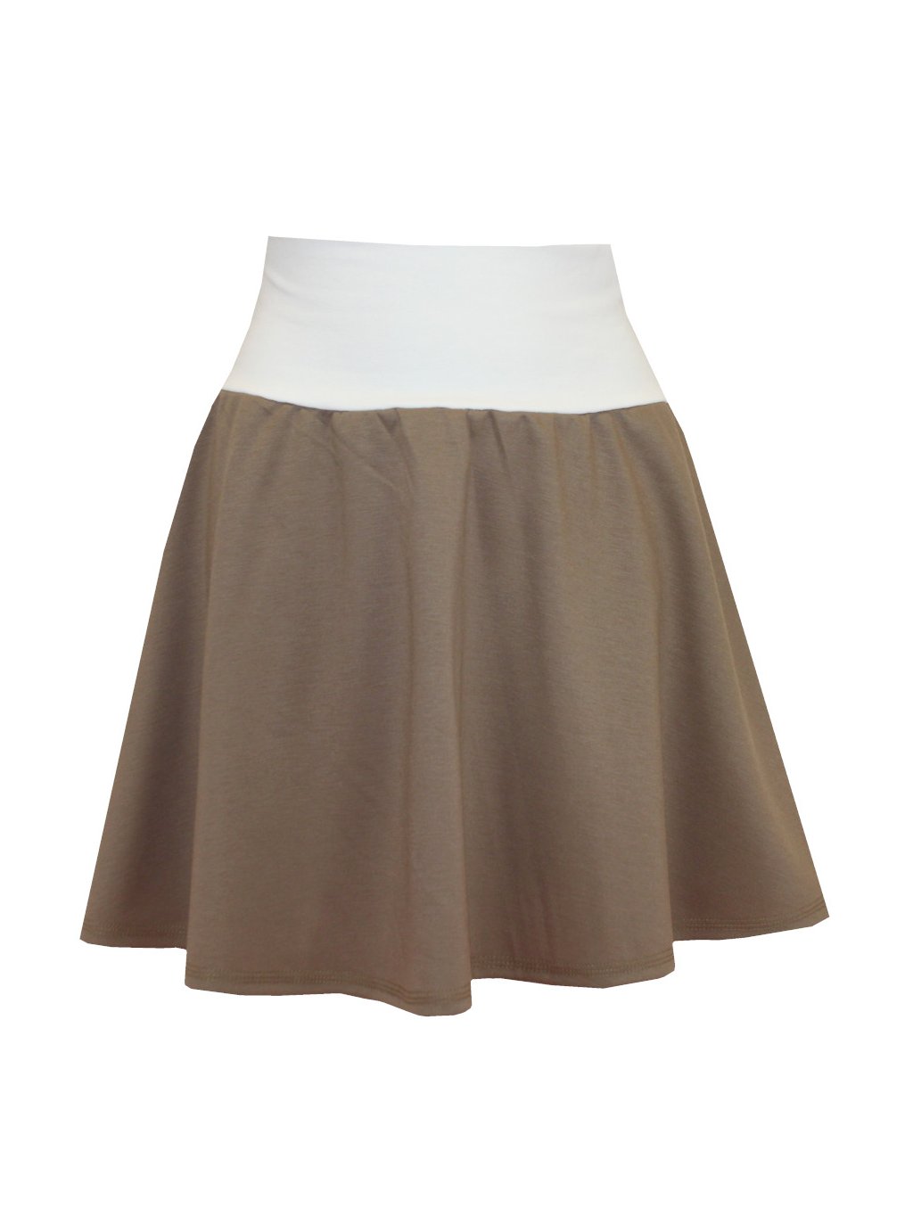 Hnědá půlkolová sukně, bílý pas