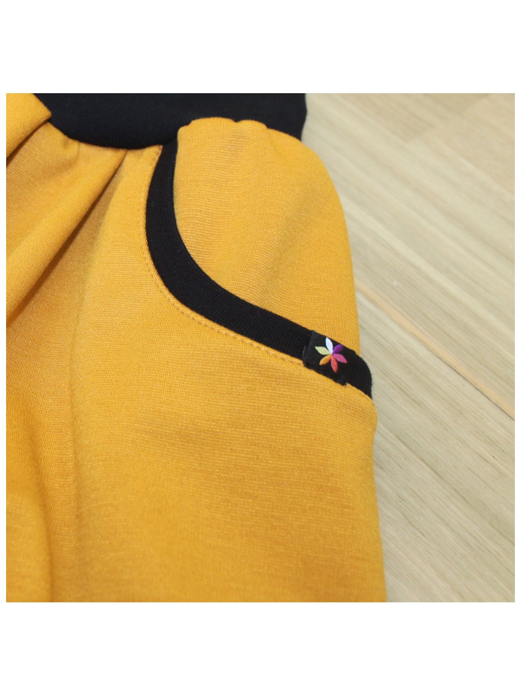 Hořčicová balonová sukně KATY, kapsy, dubová větvička s listy