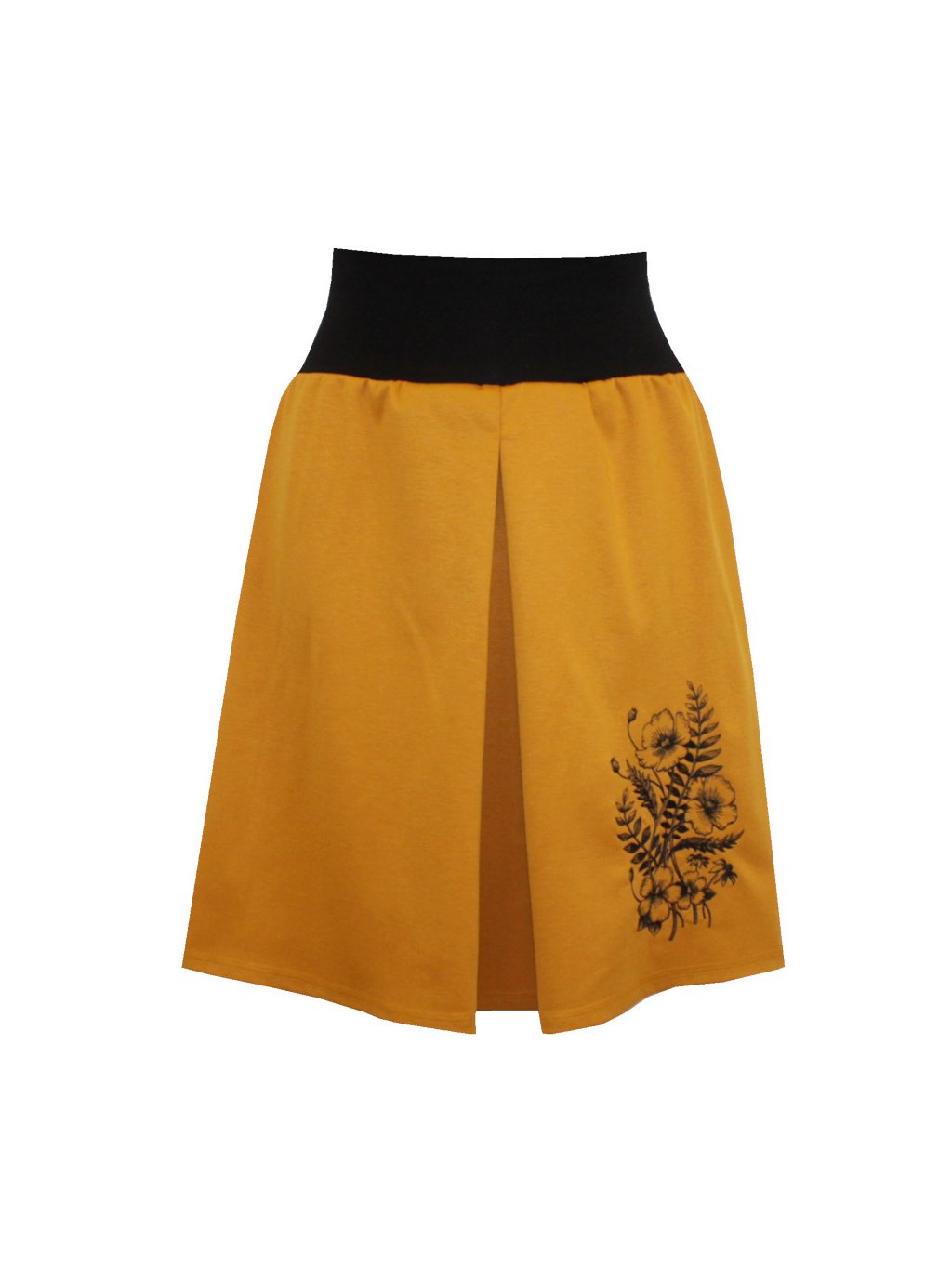 Hořčicová sukně s protiskladem, máky