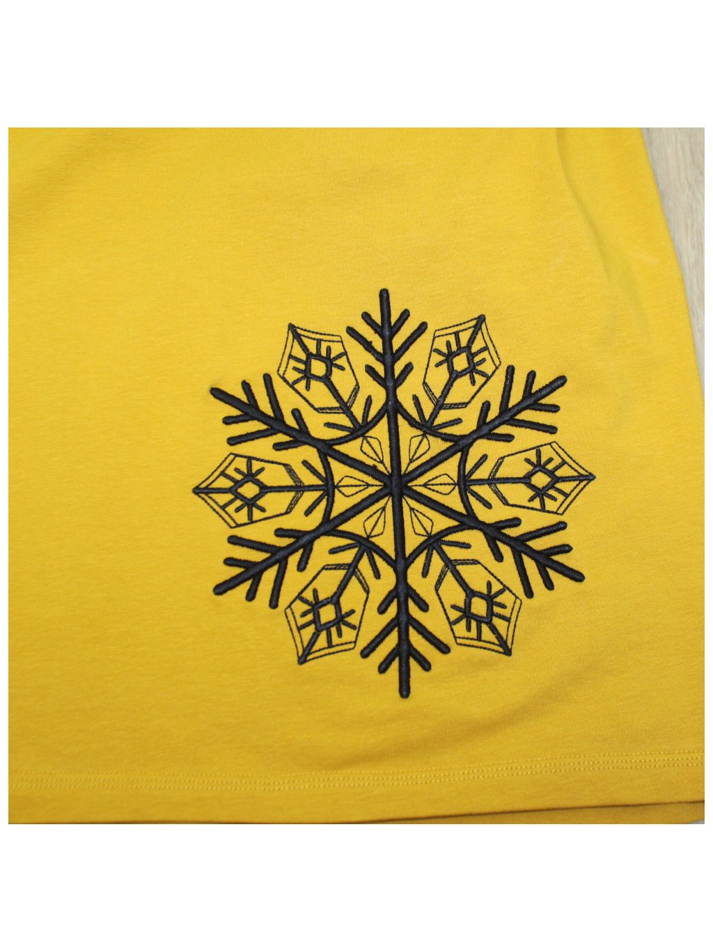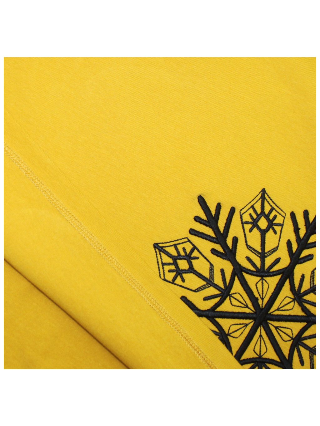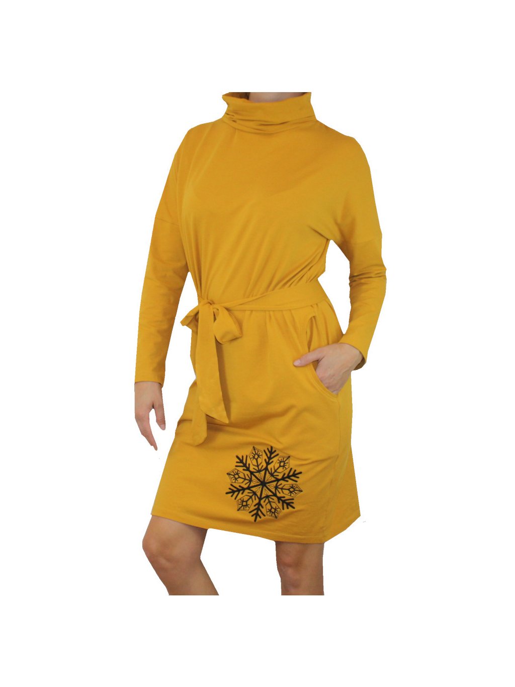 Hořčicové šaty volného střihu, rolák, dlouhé rukávy, pásek, vločka