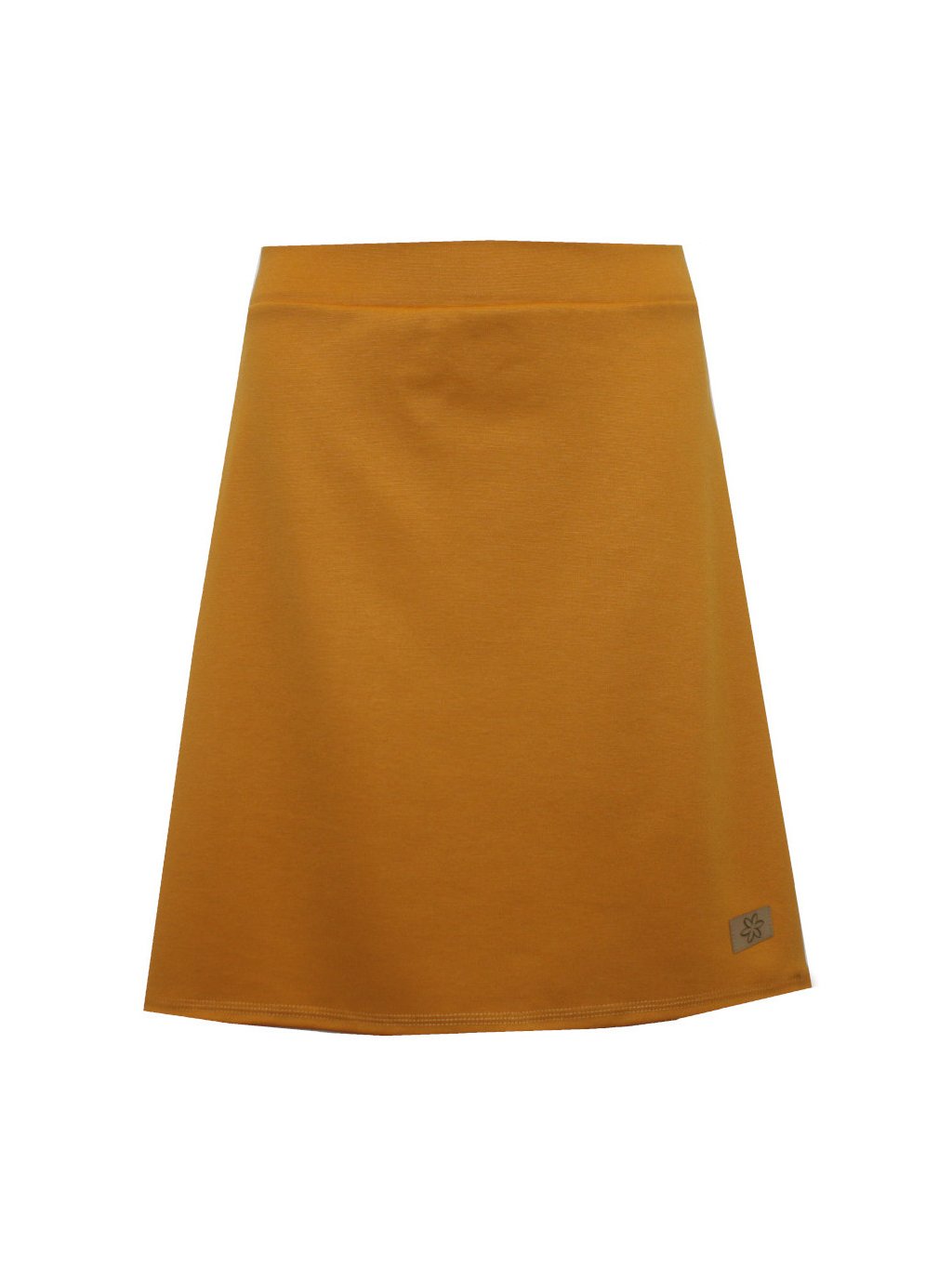 Dámská hořčicově žlutá áčková sukně se hodí celoročně. Sukně je elegantní, slušivá a nosí se na bocích.