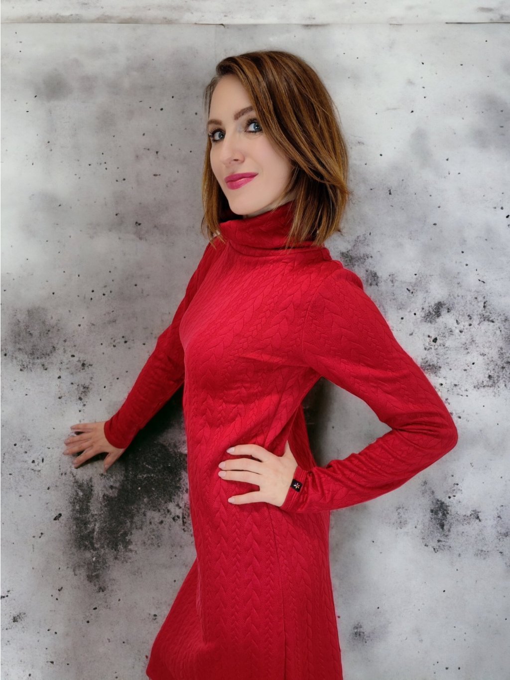 Hřejivé dámské šaty MEDLEY, copánky, červené