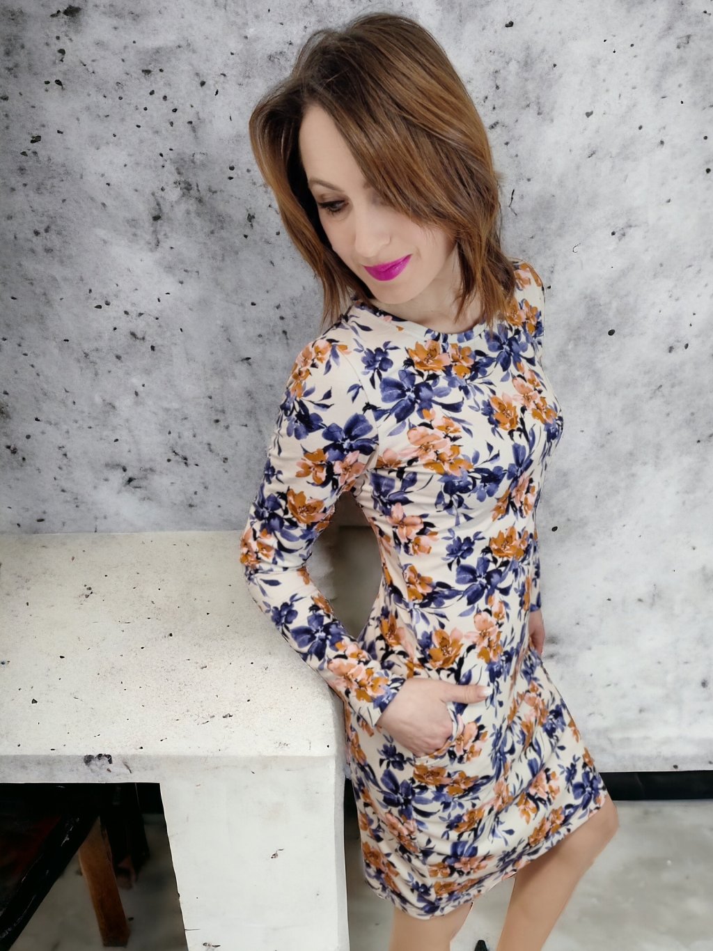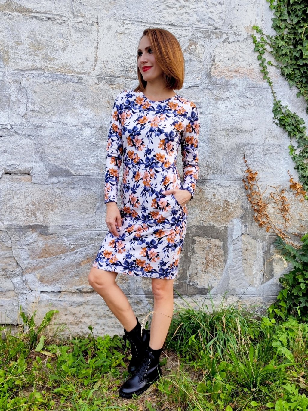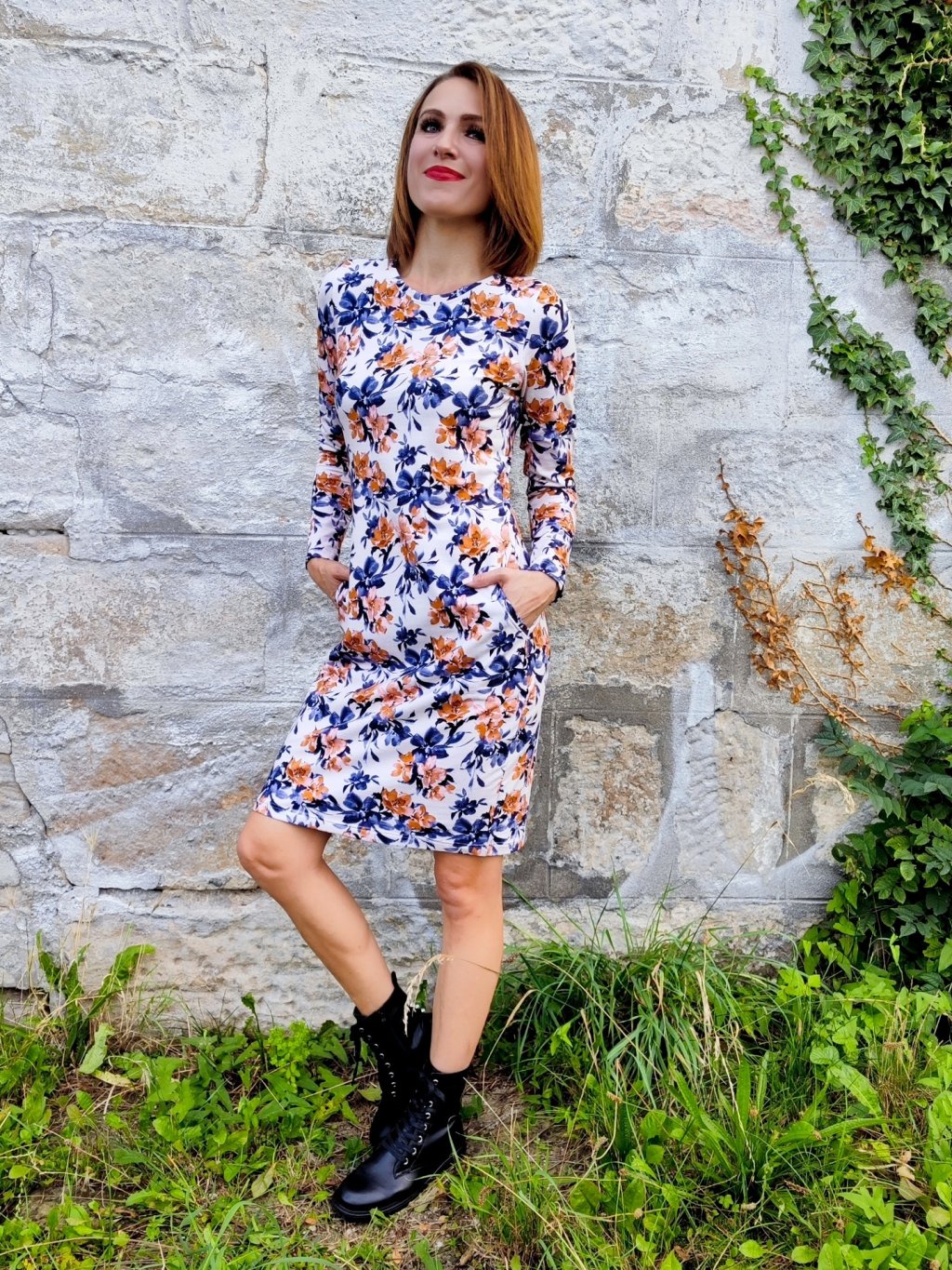 Vzorované dámské šaty ze středně silného úpletu s digitálním potiskem - z mikinoviny jsou pohodlné a přizpůsobivé.
