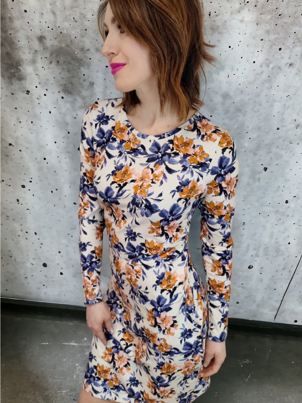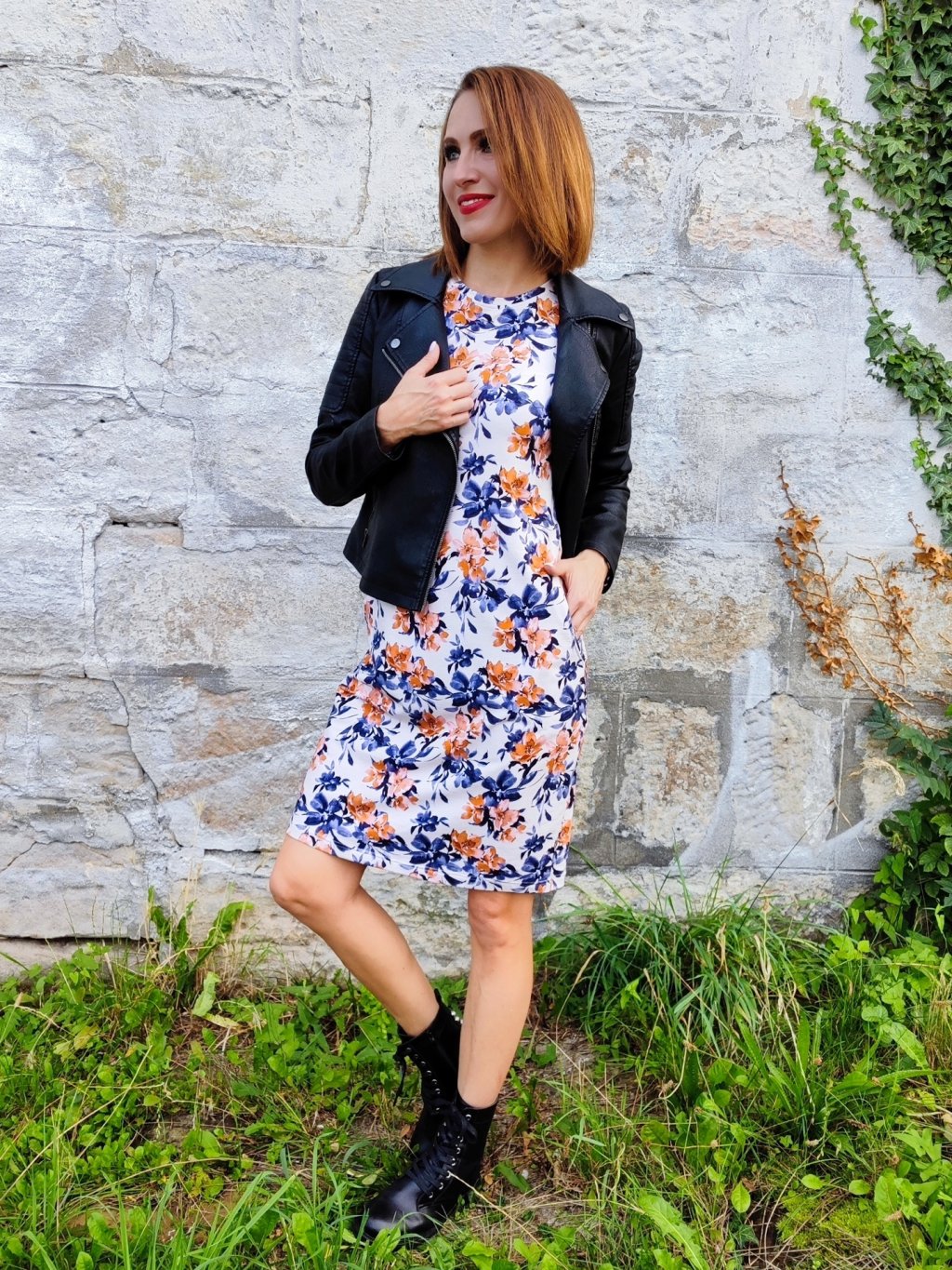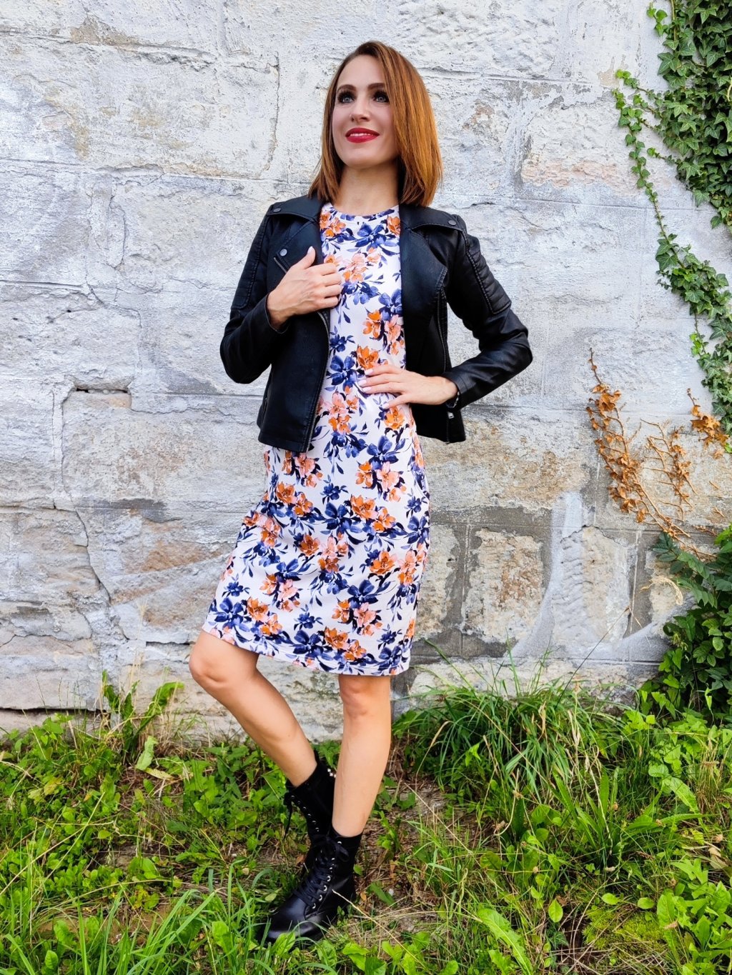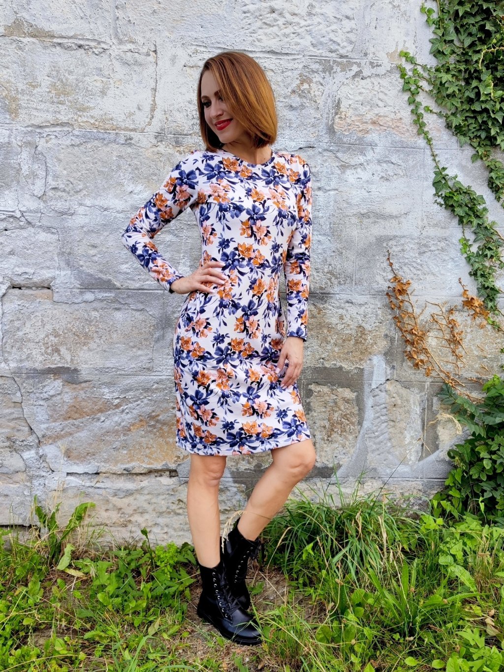 Vzorované dámské šaty ze středně silného úpletu s digitálním potiskem - z mikinoviny jsou pohodlné a přizpůsobivé.